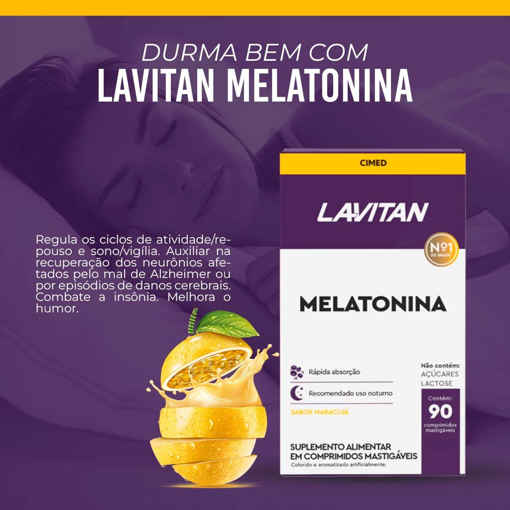 Lavitan Melatonina 0,21 mg 90 cpr Mastigavel Sabor Maracuja