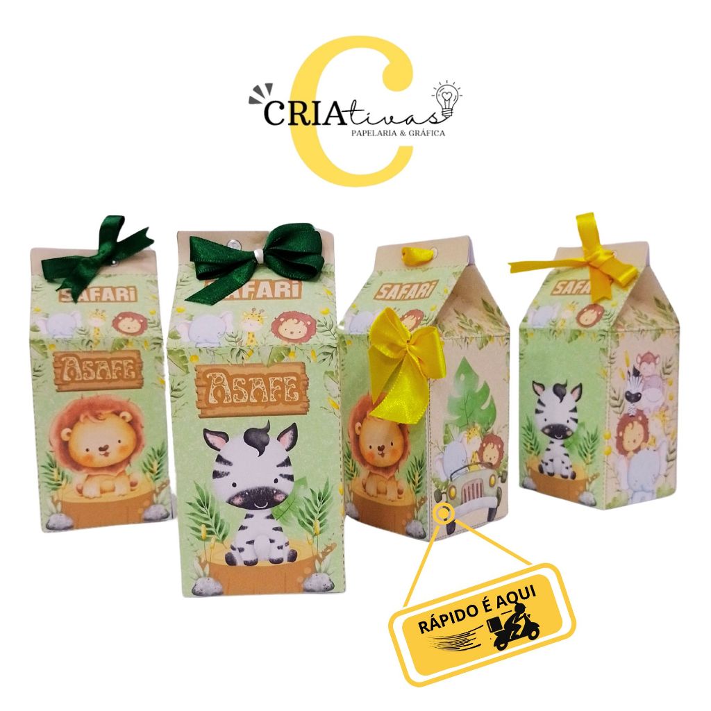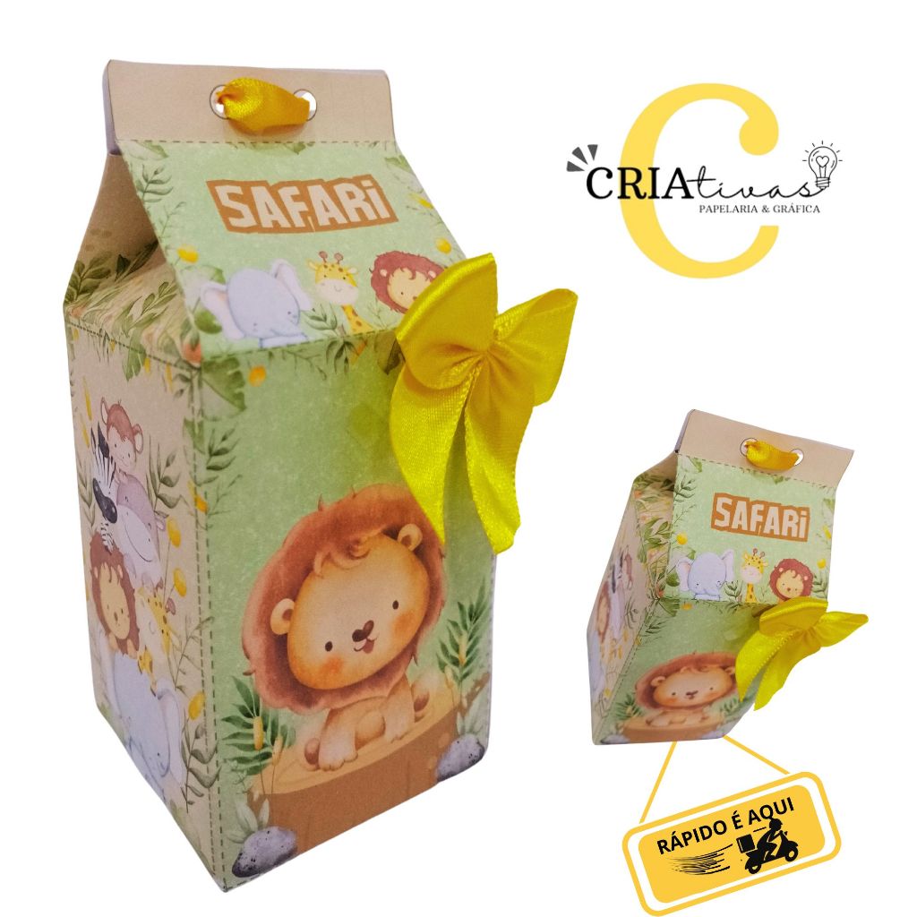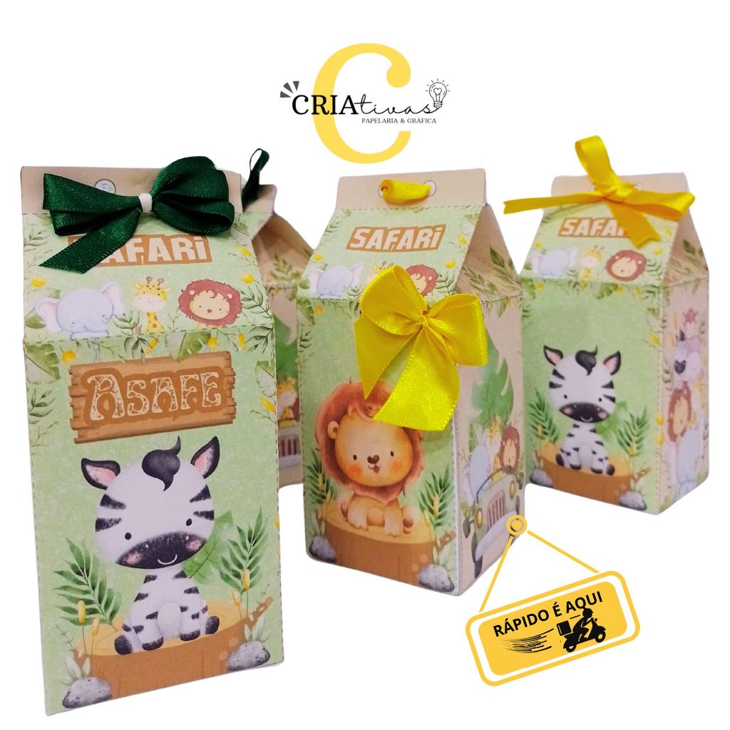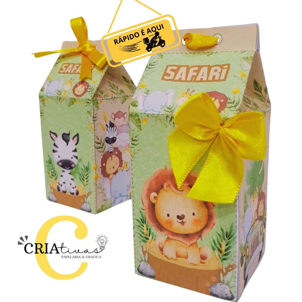 Kit 10 à 20 CAIXAS Lembrancinha Festa SAFARI AQUARELA CUTE Caixas Milk e Apliques (sem nome)