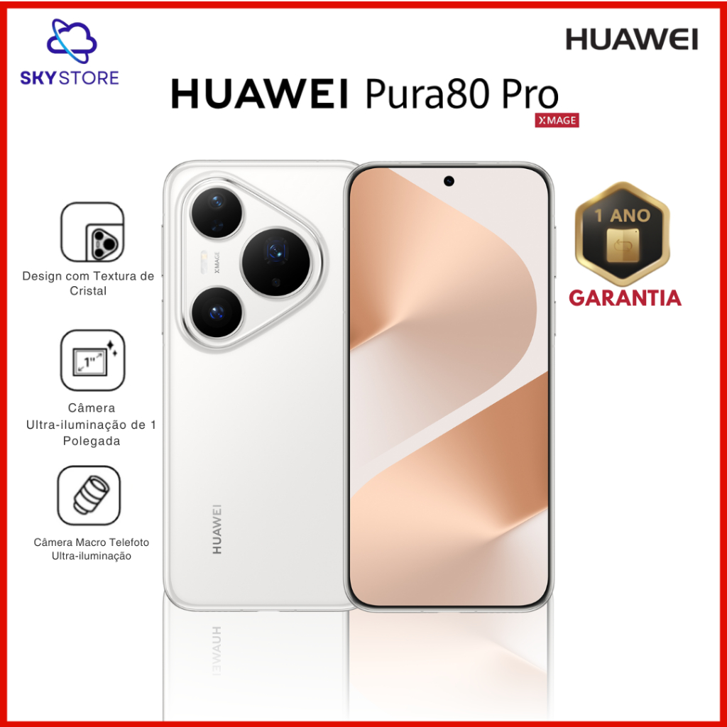 Huawei Pura 80 PRO , 512GB + 12GB RAM, Processador HiSilicon Kirin 9020, CÃmera 50MP+40MP+48MP, Versão Global