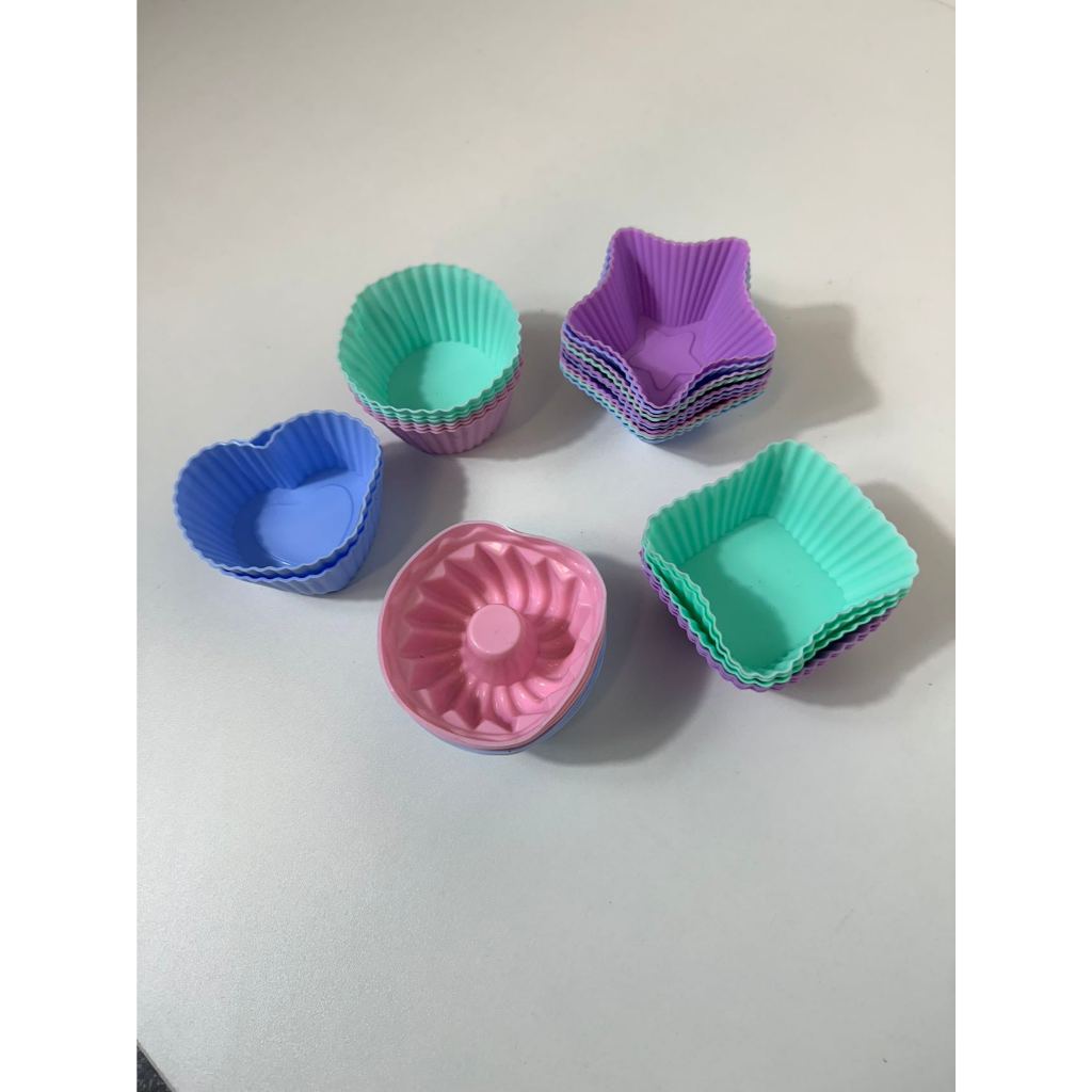 Kit de 6 ou 12 forminha molde de bolo mini de silicone para cupcake pudim prático confeitaria e doces forno