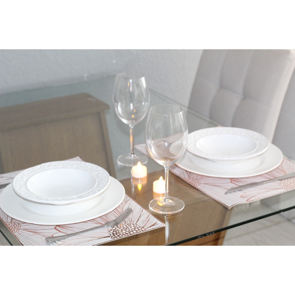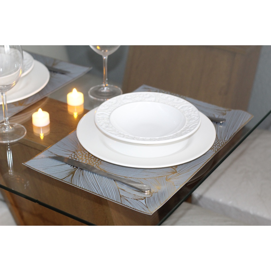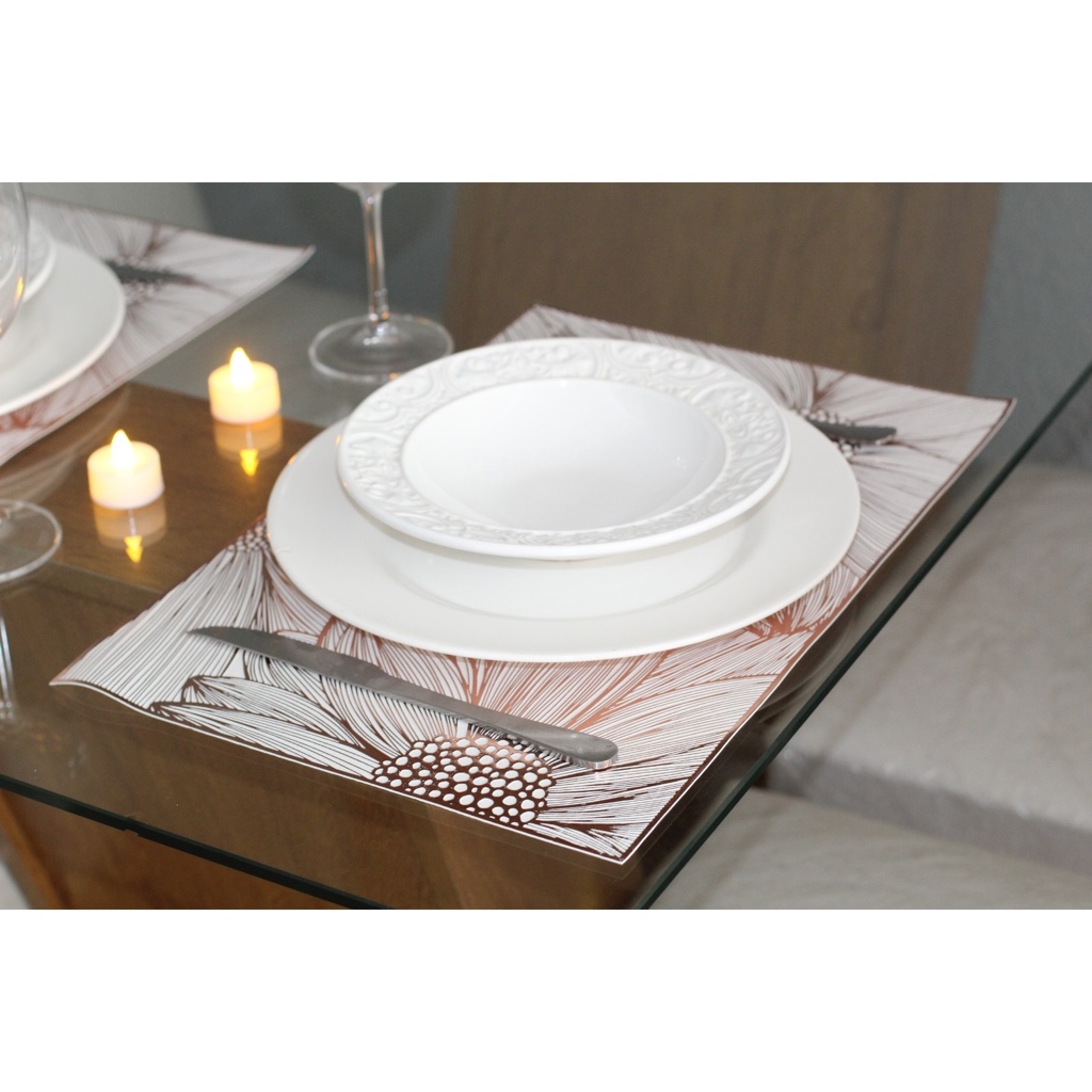 Kit jogo americano de mesa jantar Sousplat - 4 pçs/6 pçs/ 12 pçs - retangular e flores margarida