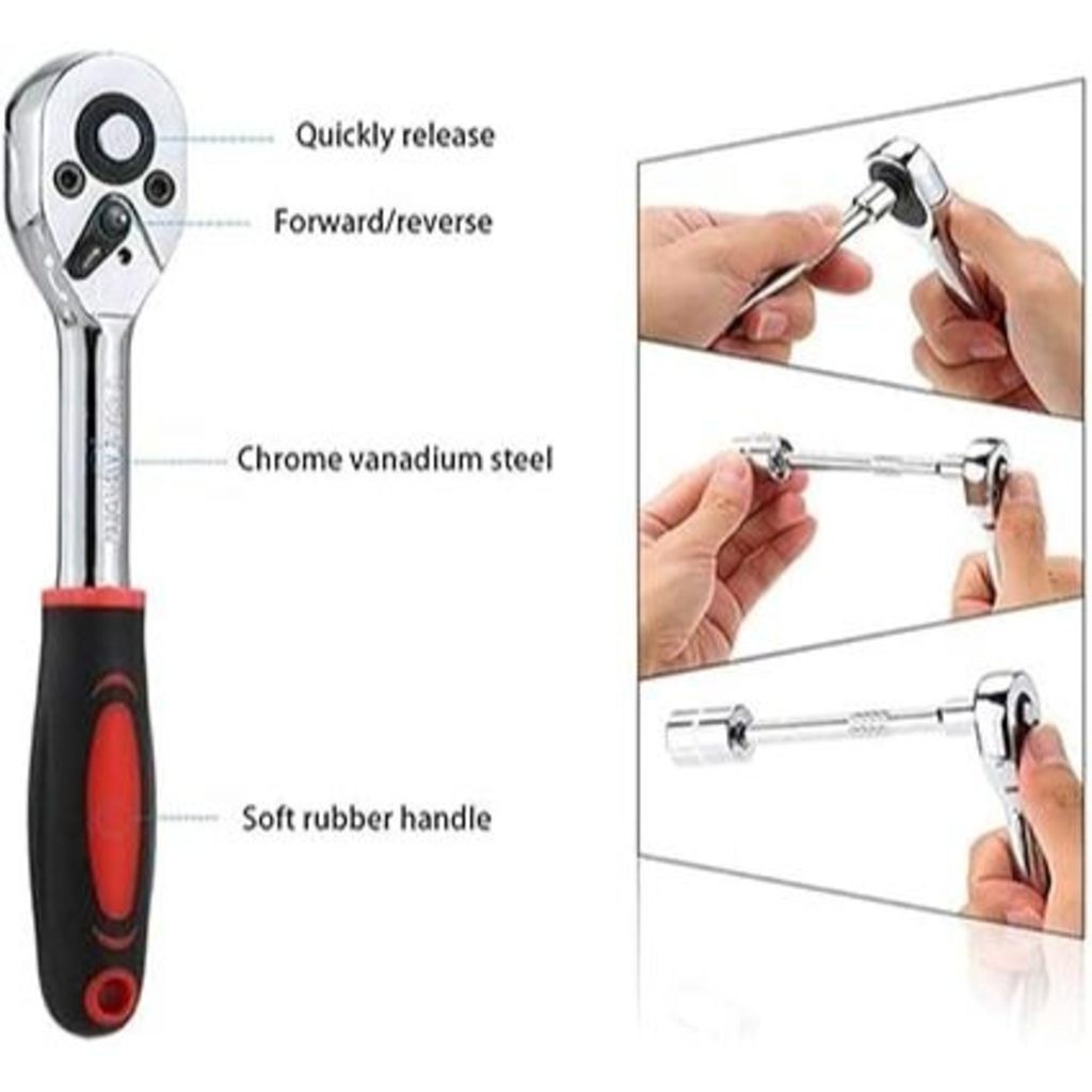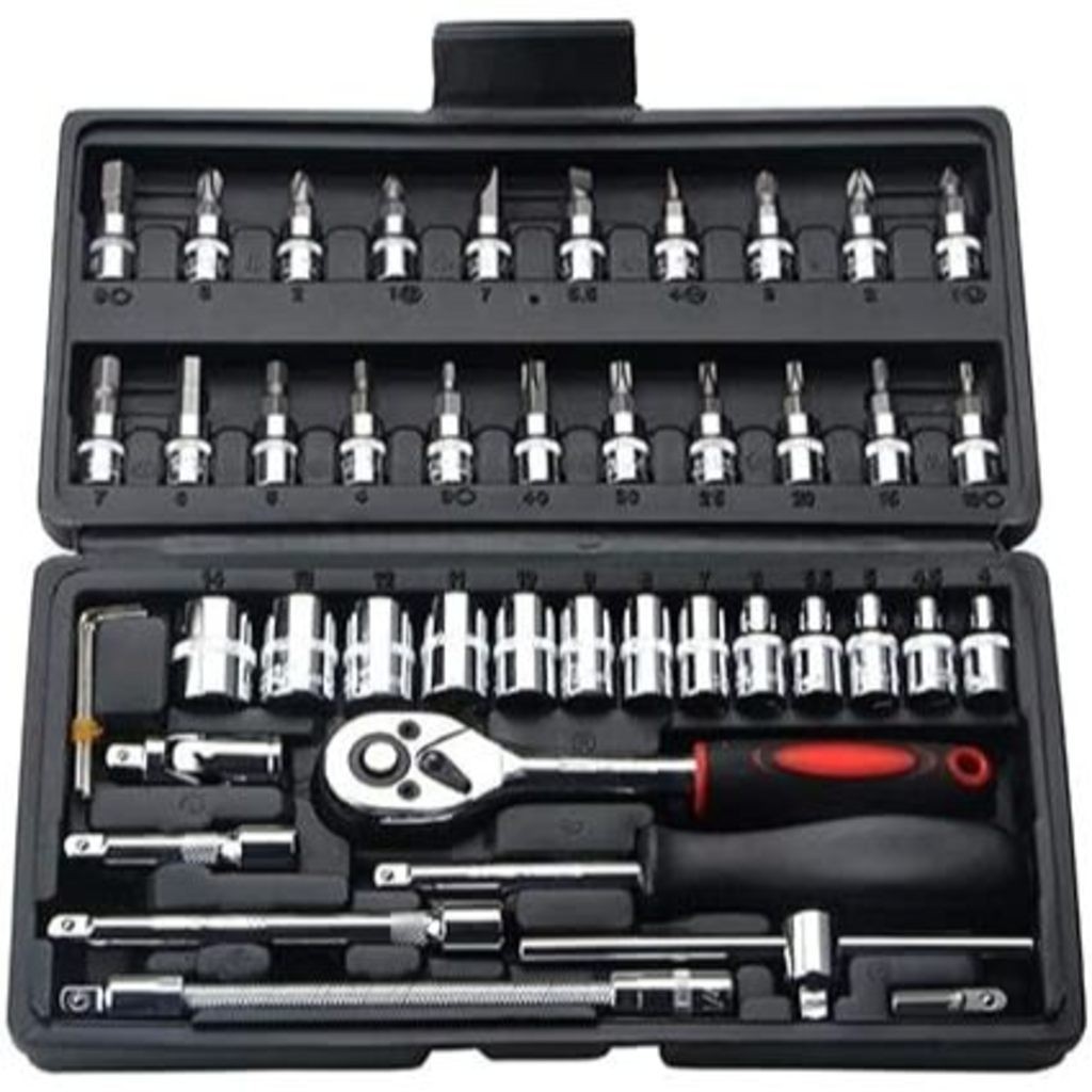 Caixa 46 Peças de Ferramenta de Soquete de Catraca para Manutenção Automotiva Mecânica e Motocicleta Ferramenta