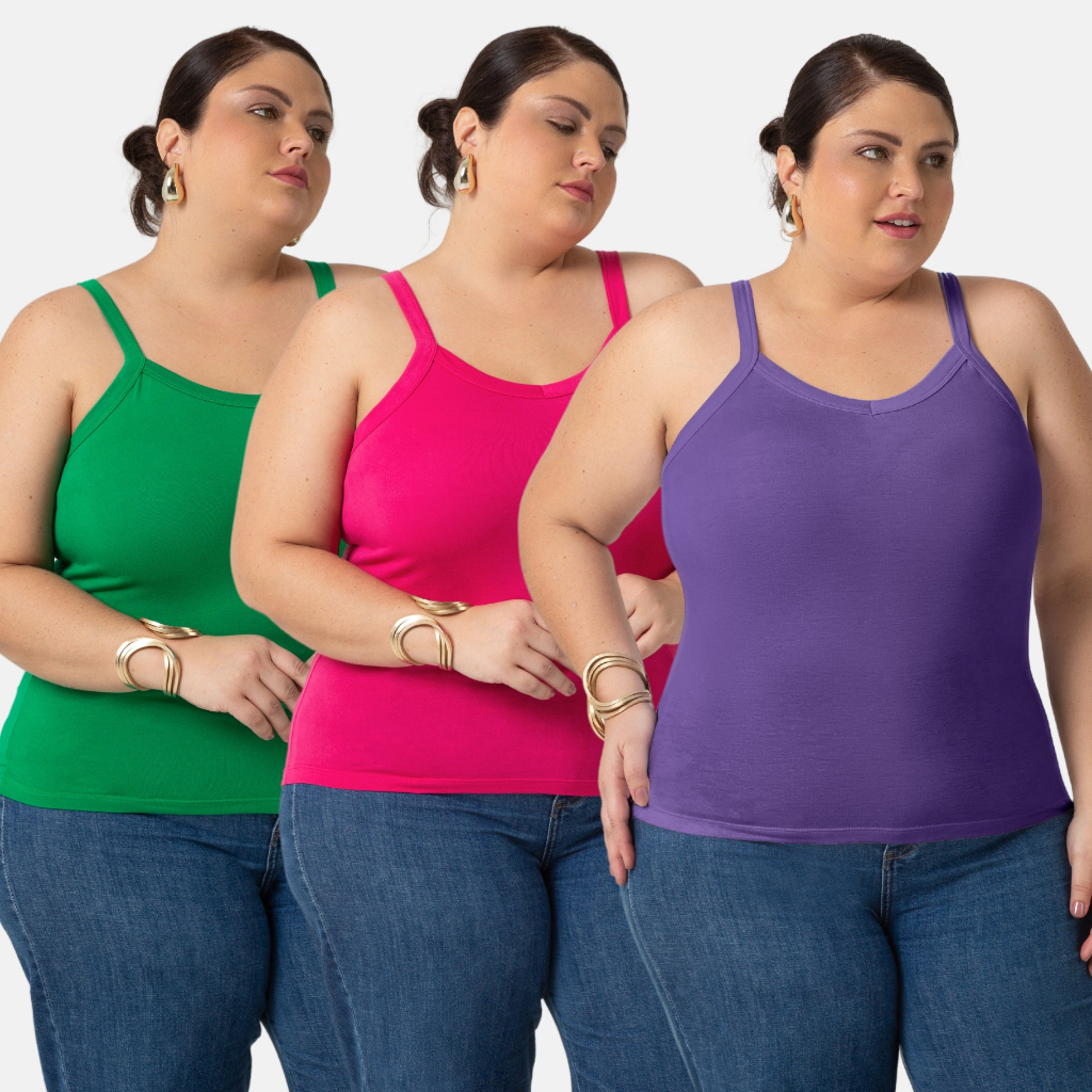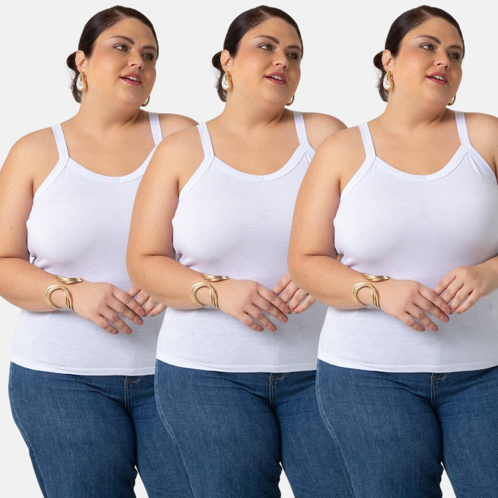 Kit 3 Regatas Plus Size Feminina do P-G4 de Viscolycra 1123-KIT3