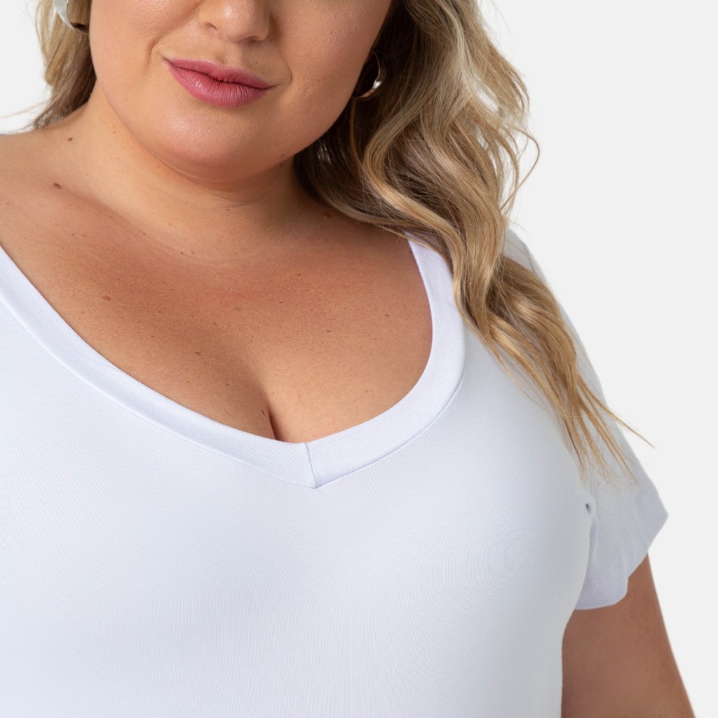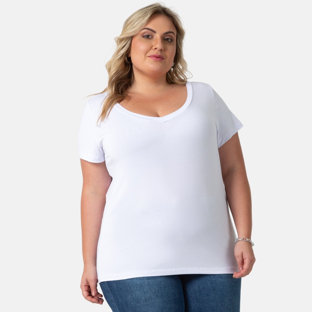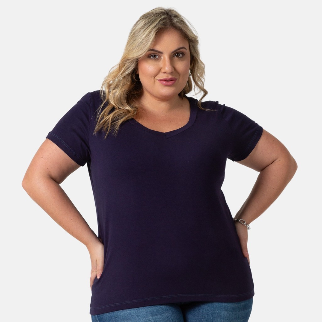 Blusa De Viscolycra Feminina Plus Size Decote V Confortável 103836-F1
