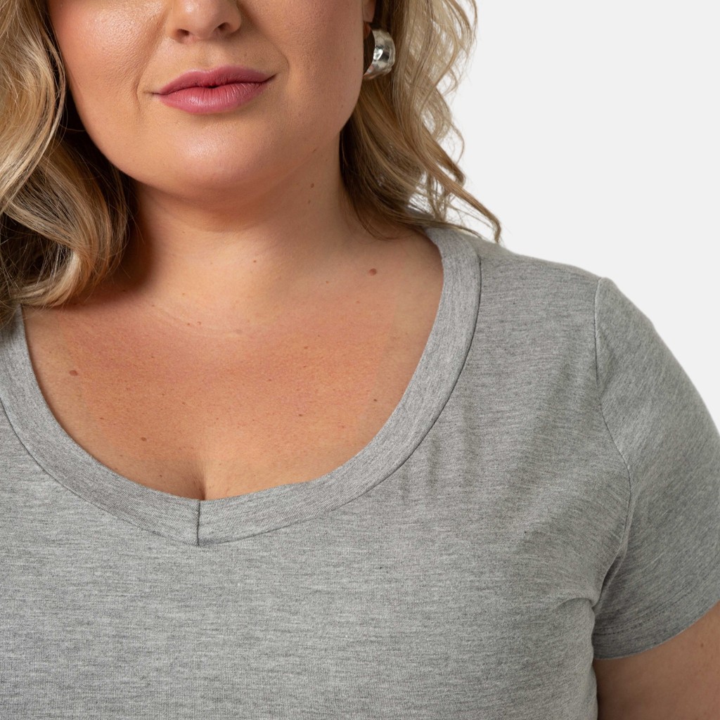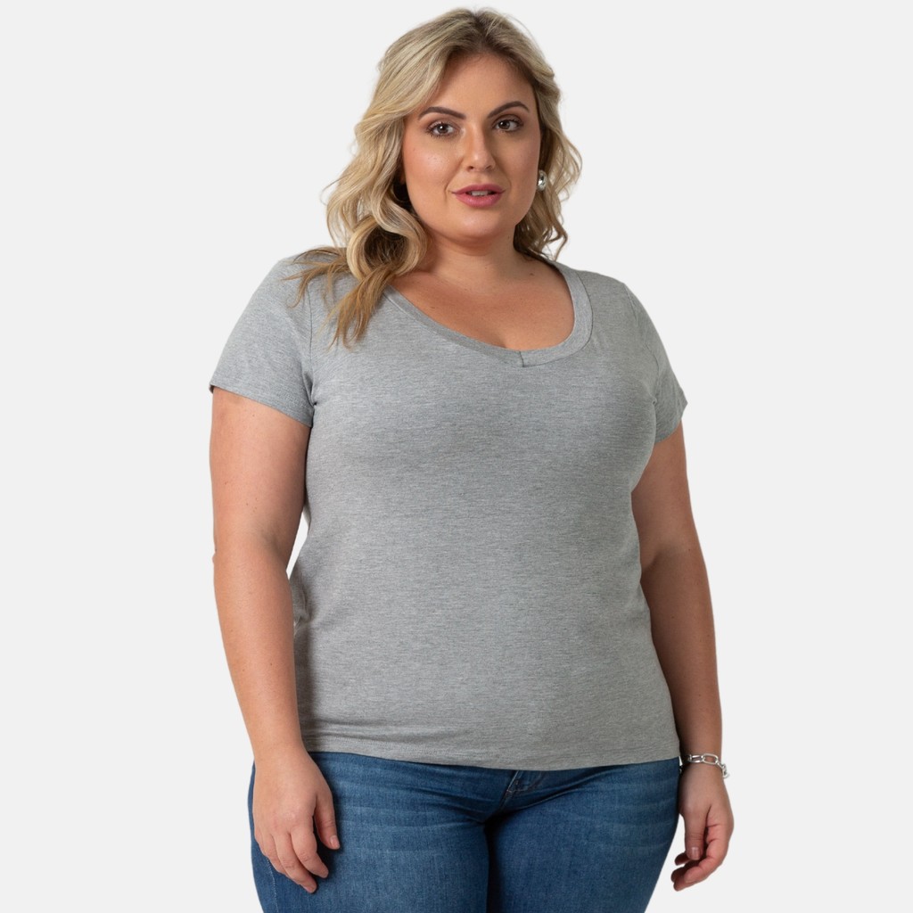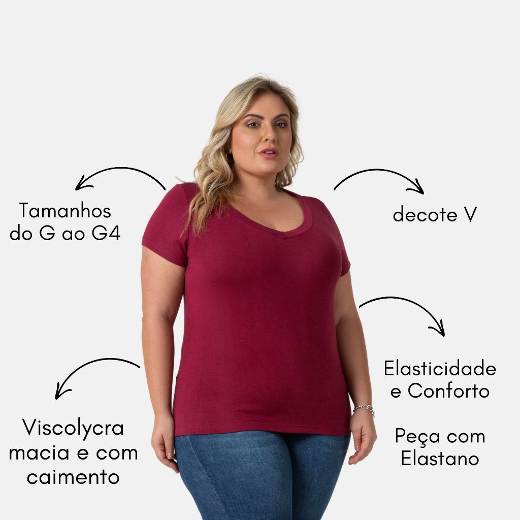 Blusa De Viscolycra Feminina Plus Size Decote V Confortável 103836-F1