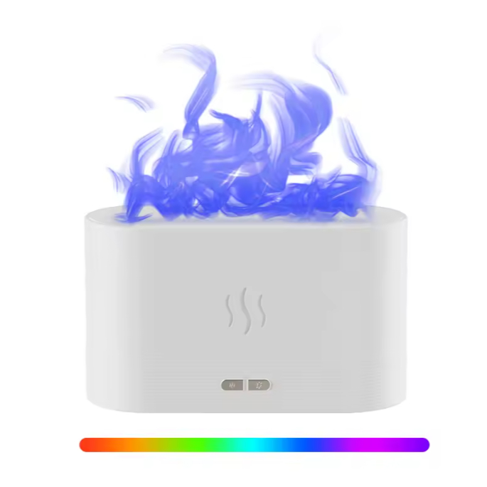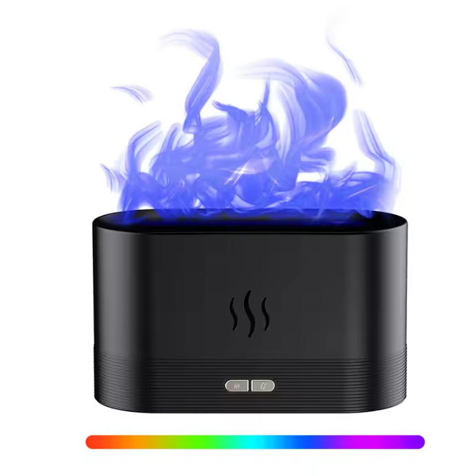 Umidificador de Chama com Difusor de Óleo Essencial e Luz LED Colorida de 7 Cores, Efeito de Chama