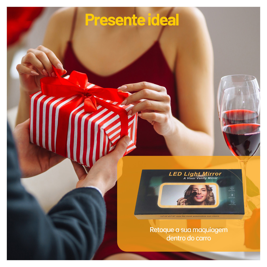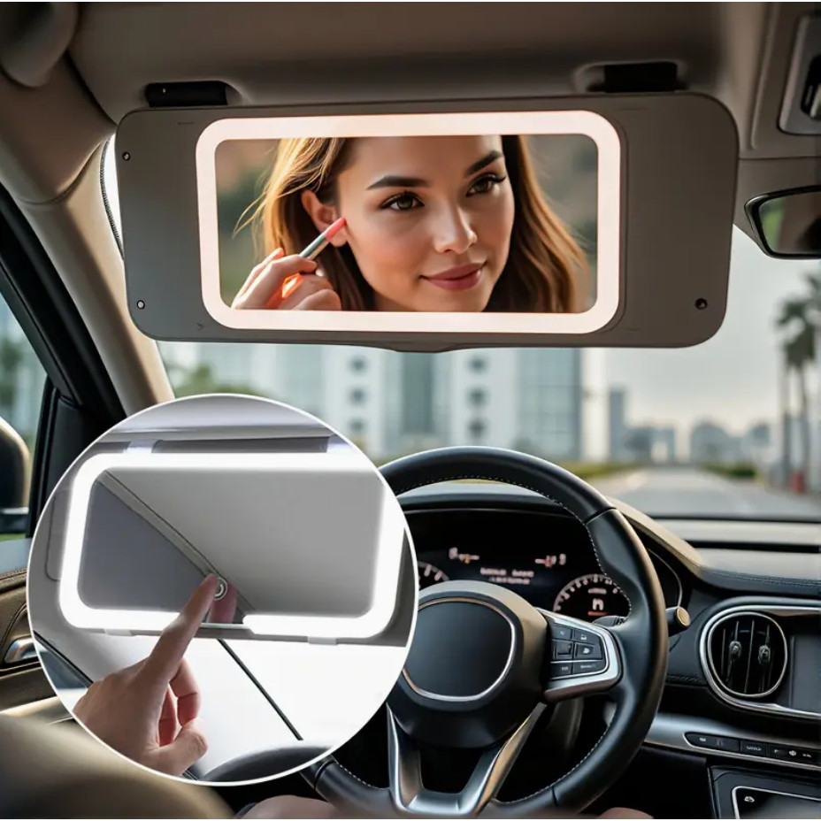Espelho com led para carro para maquiagem recarregável retrovisor visor com luz 3 tonalidades OMINI