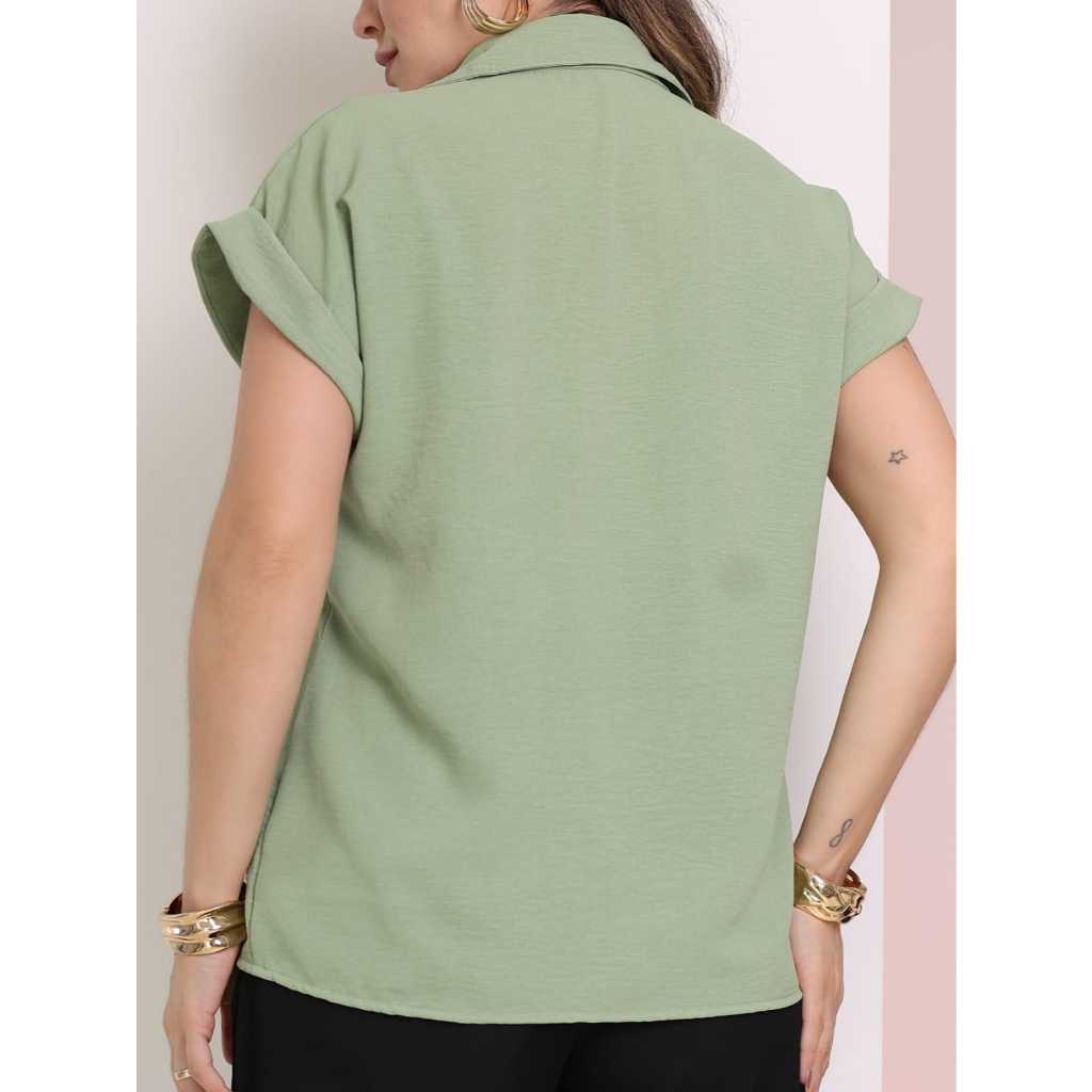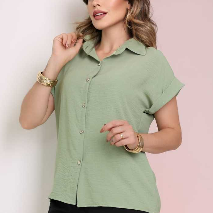Camisa feminina duna lisa de botões dourados tecido elegante confortável ideal para o dia a dia