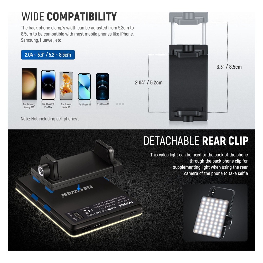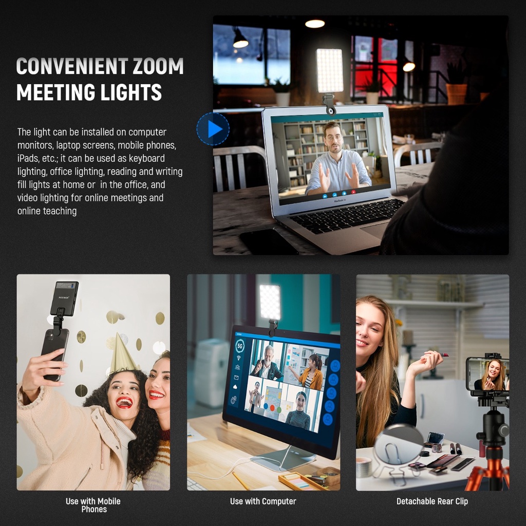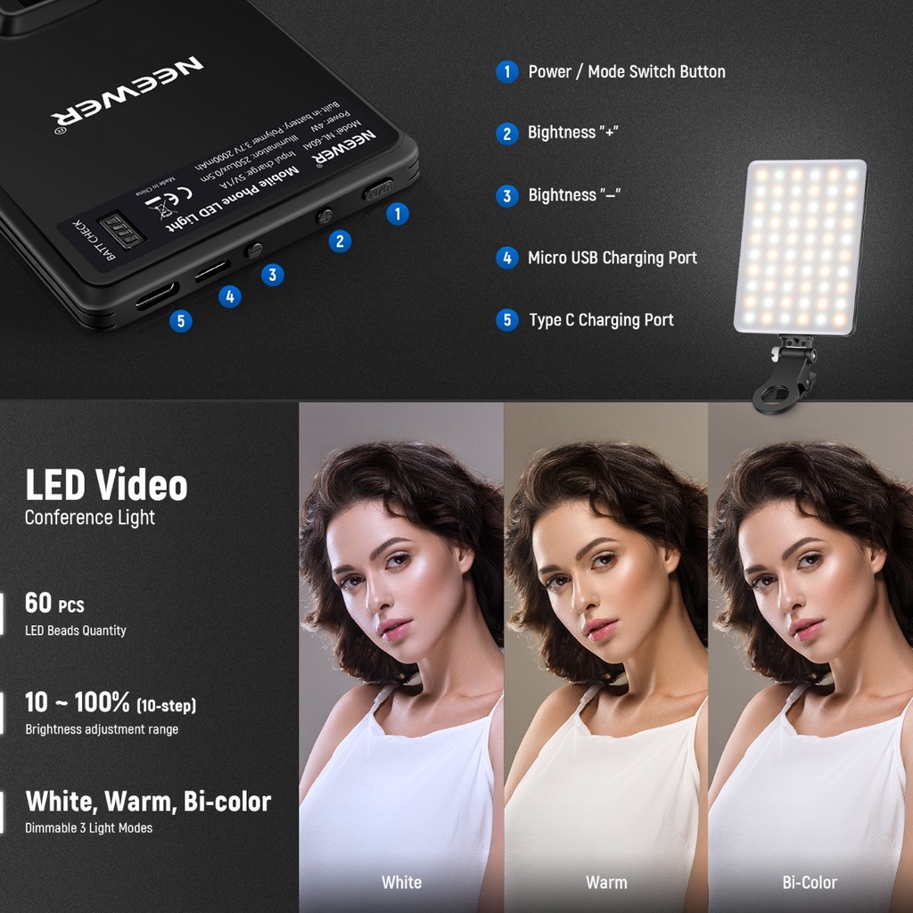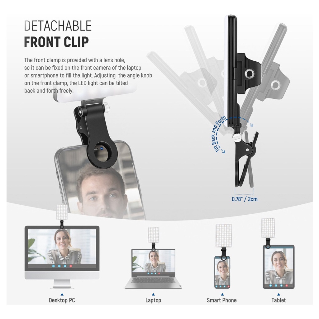 60 Led Selfie Light Clip On Recarregável 2200Mah, 3 Modos De Luz Para Câmera De Telefone E Webcam