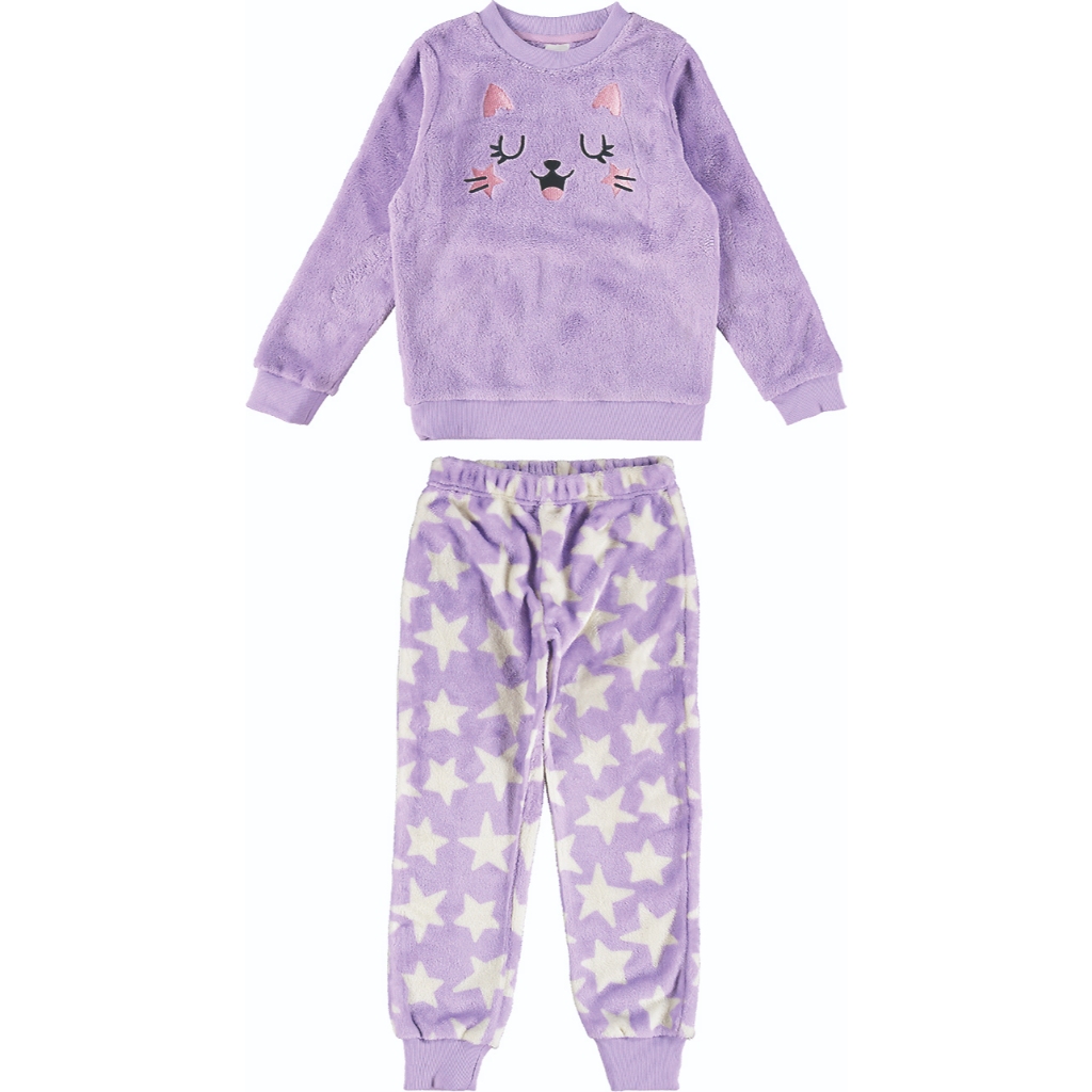 Pijama Infantil Menina Bordado Gata Em Fleece Malwee Kids