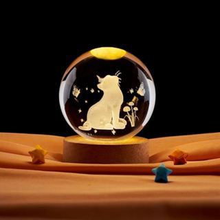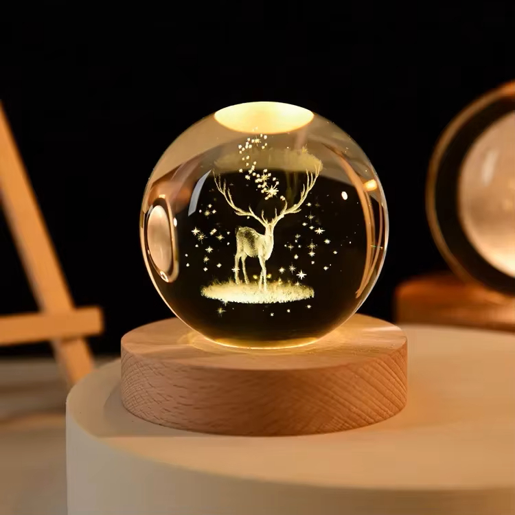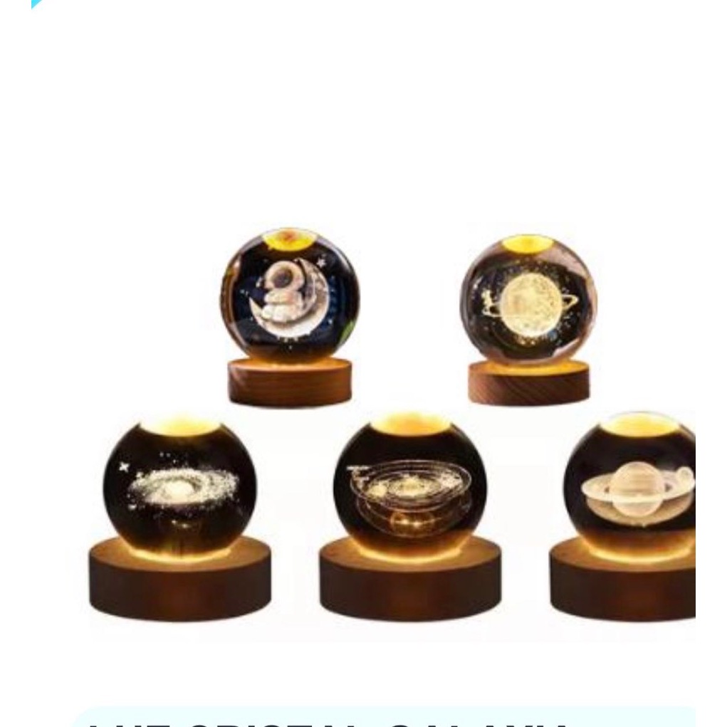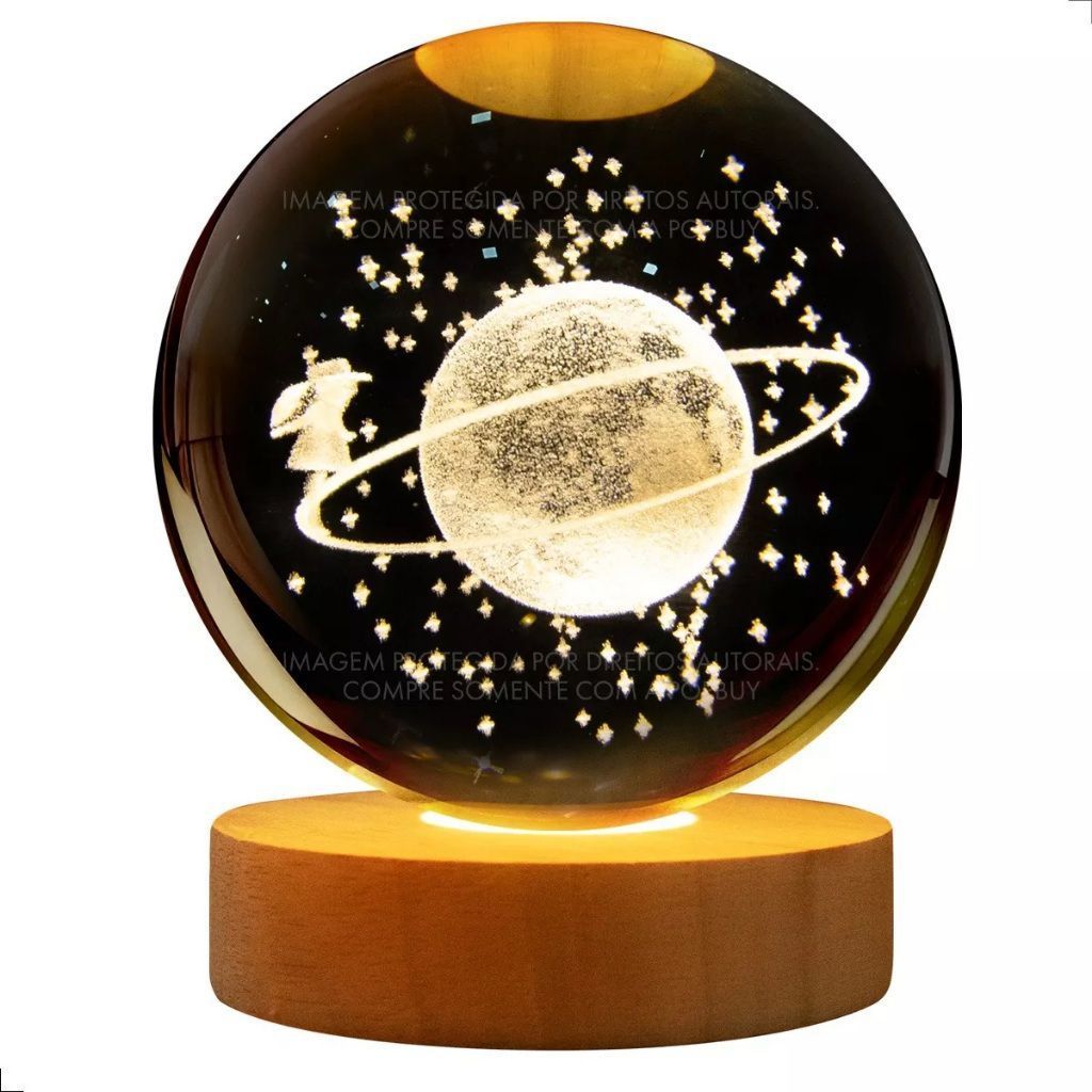 Luminária Bola de Cristal, Mesa Sistema Solar Saturno Lua Galáxia LED Base Madeira Enfeite Decorativo Casa