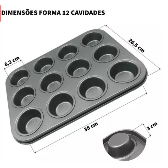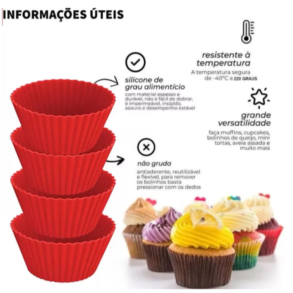 Kit 12 ou 6 Forminhas de Silicone Não Gruda + Forma de Cupcake 12 ou 6 Cavidades Antiaderente Empada