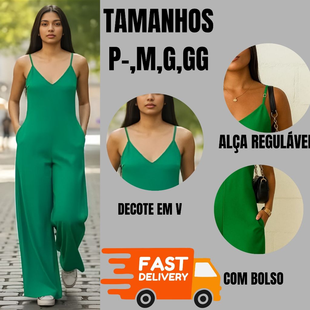 Macacão Feminino Moda Evangélica Casual Alça Regulável Comprimento Max TENDÊNCIA