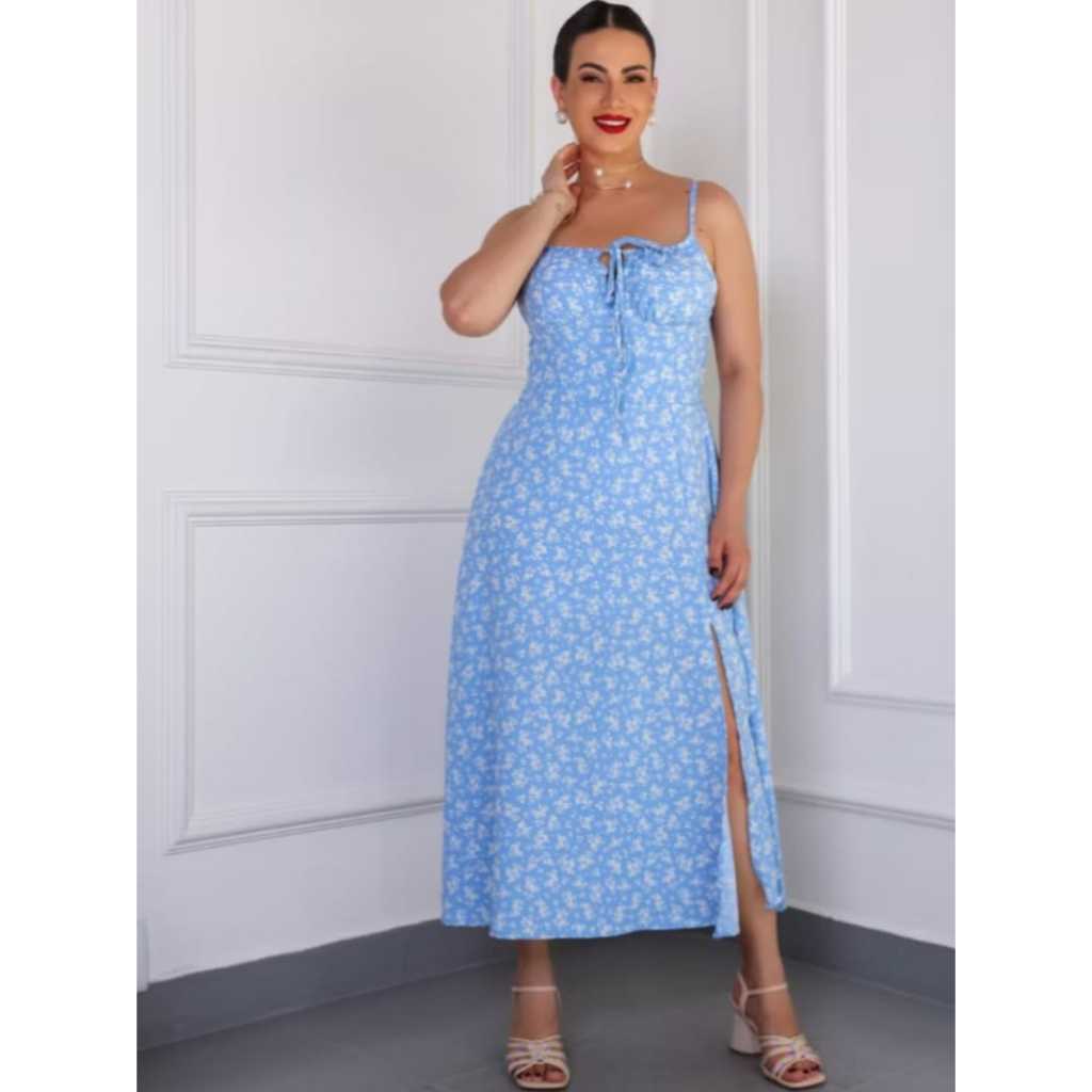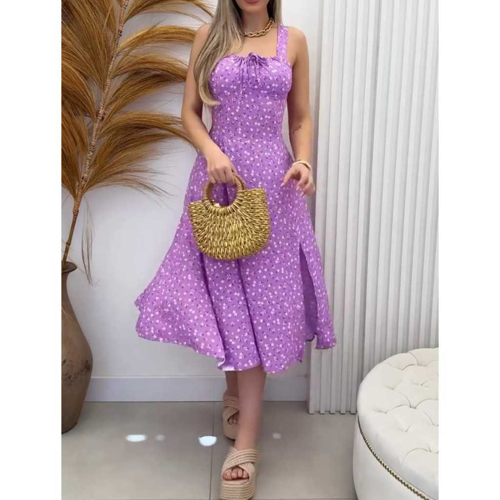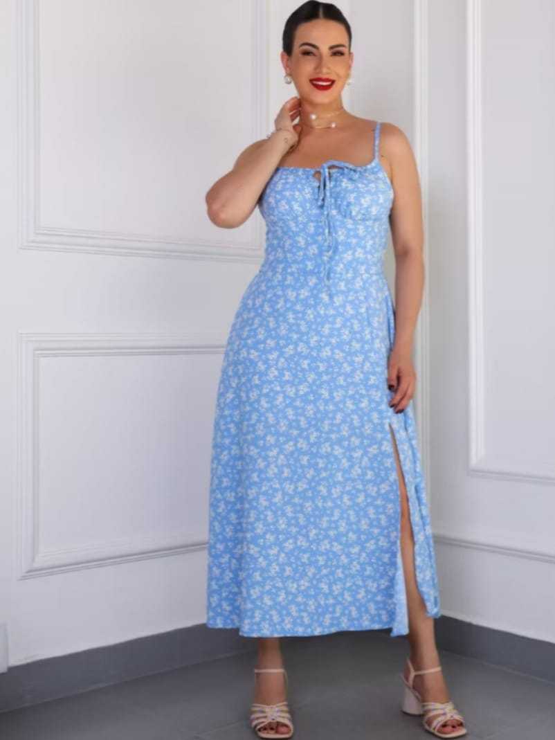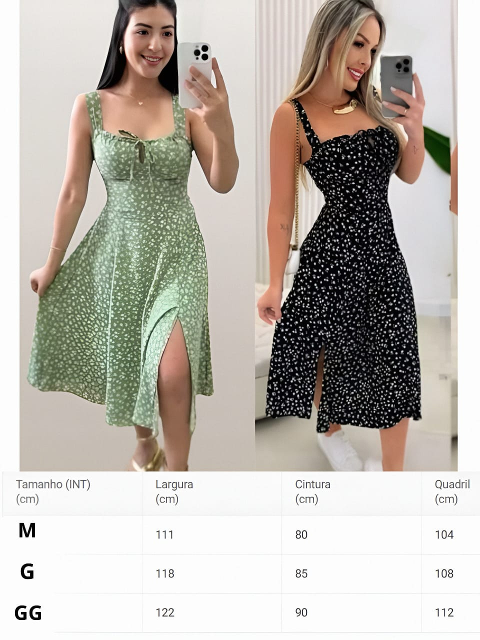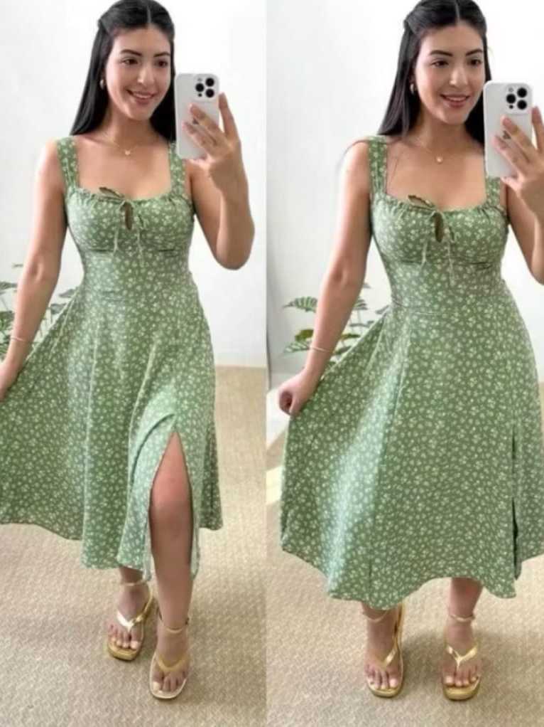 Vestido Feminino Verde Floral Soltinho look Verão Primavera Com Estampa Floral e Fenda Laterais