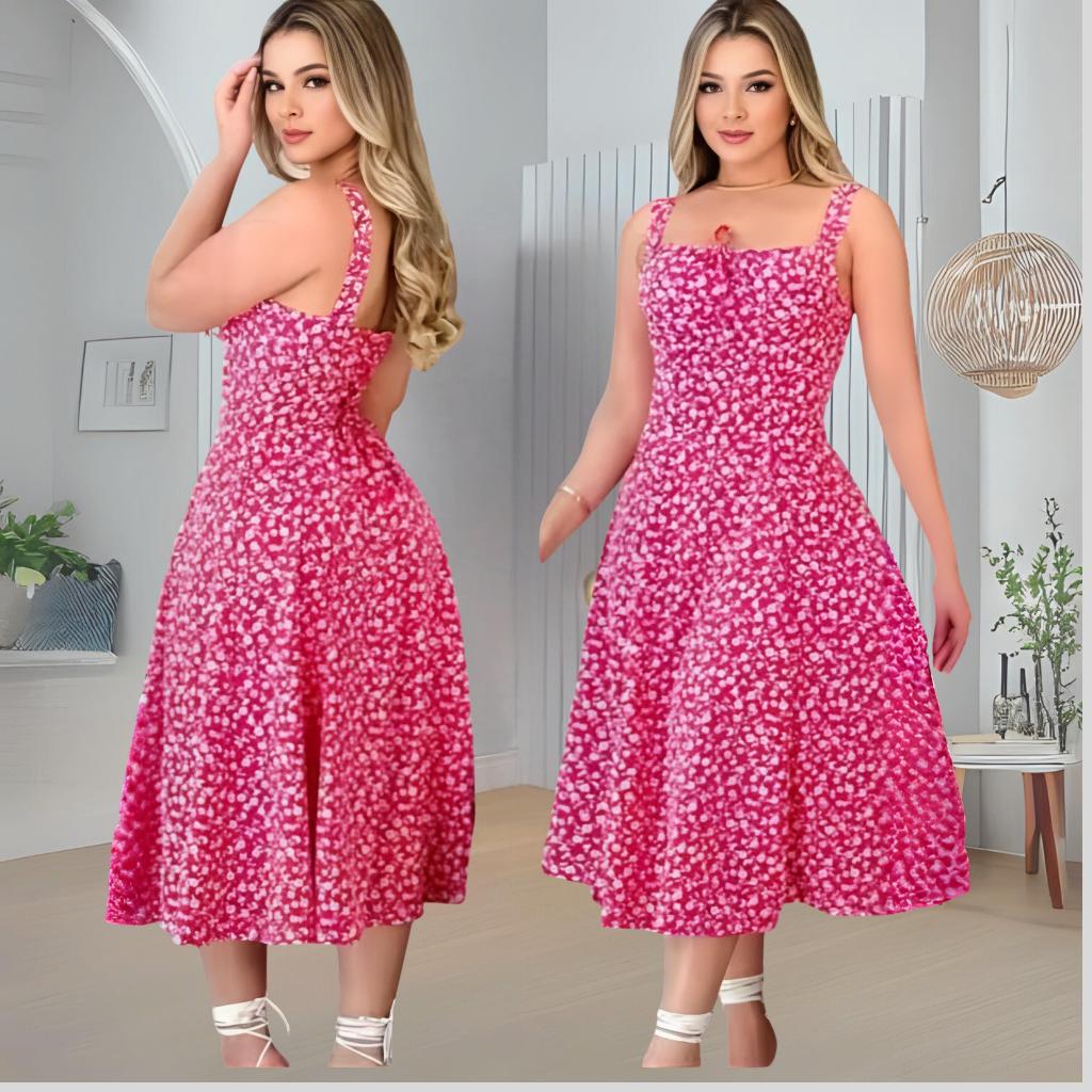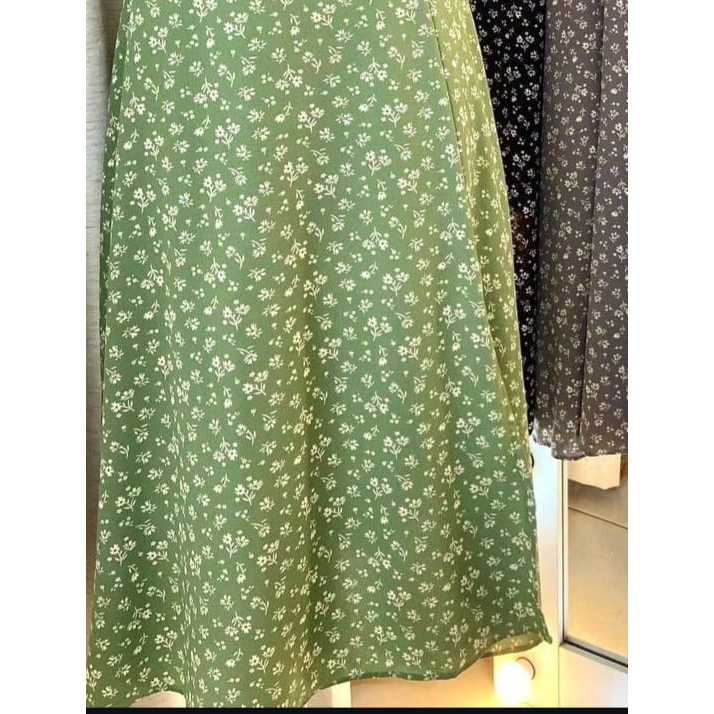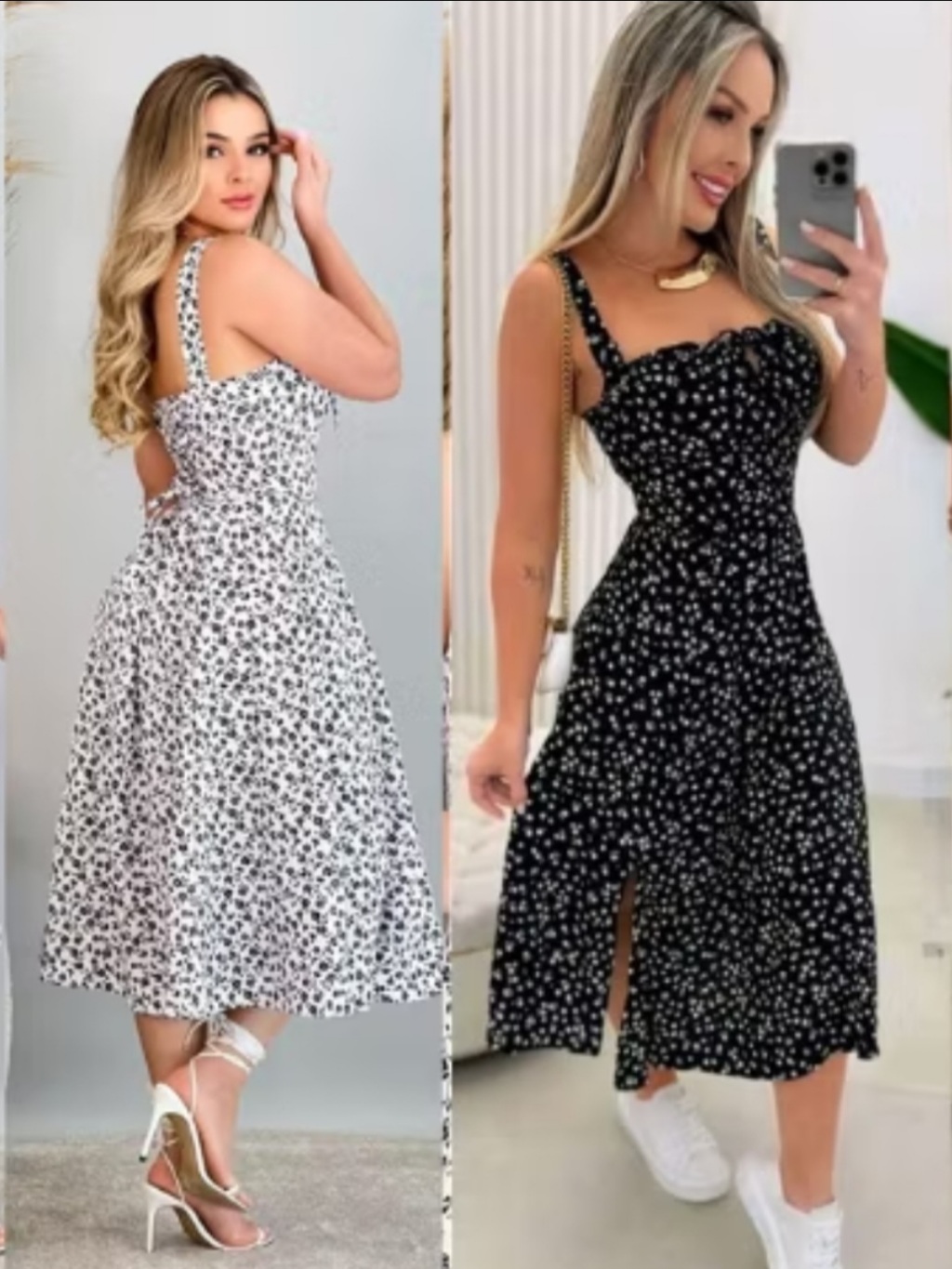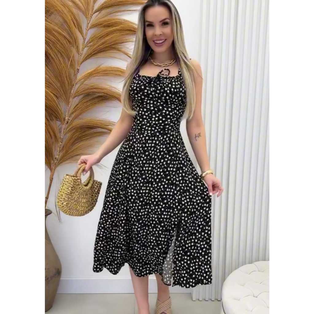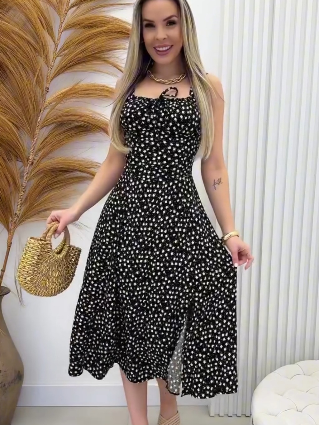 Vestido Feminino Verde Floral Soltinho look Verão Primavera Com Estampa Floral e Fenda Laterais
