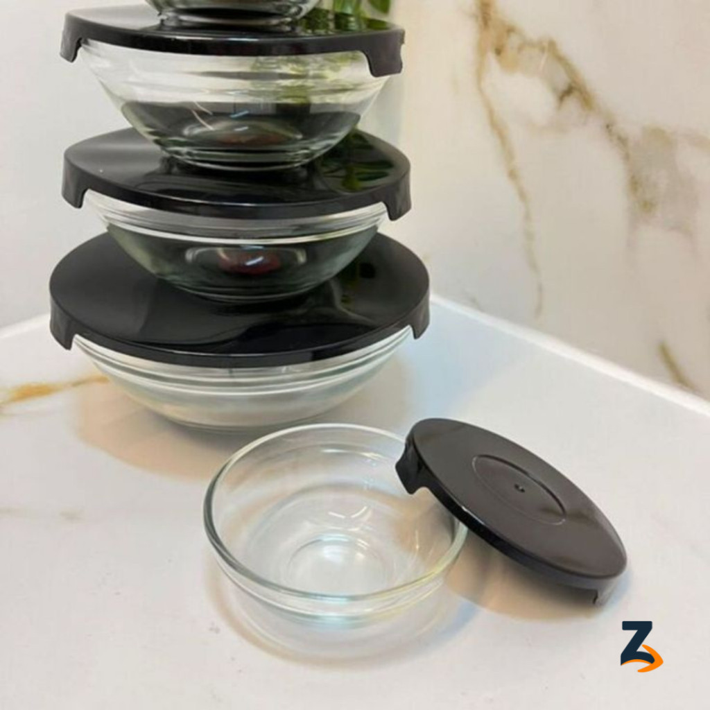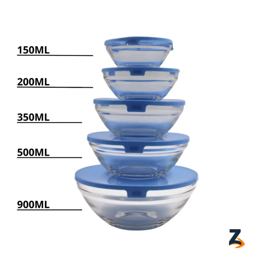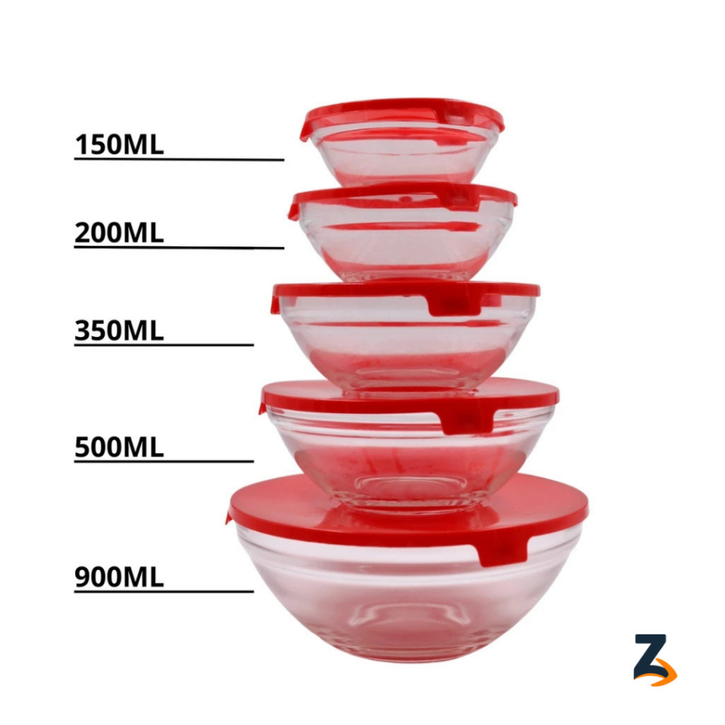 Conjunto Tigela Vidro Bowl Marmita Tampa Peças Herméticos Preto Vermelho e Azul