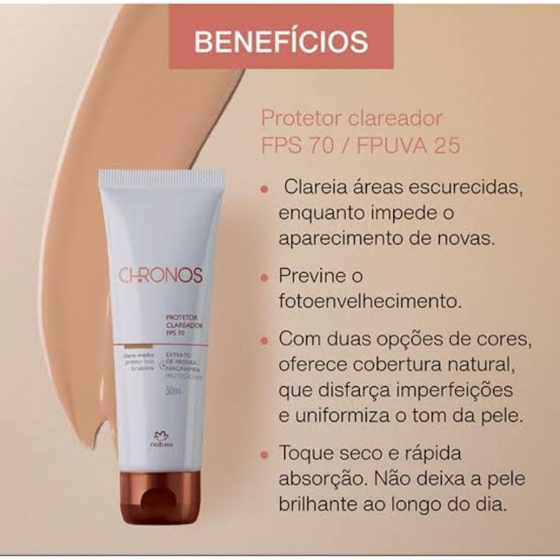 Protetor Clareador FPS 70 Chronos Claro Médio - 50ml