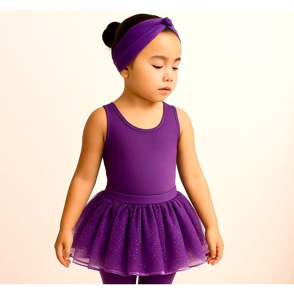 Kit 3 Itens para Ballet - Faixinha + Saia de Tule + Collant REGATA (ROXO)