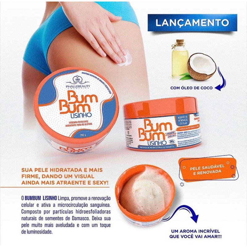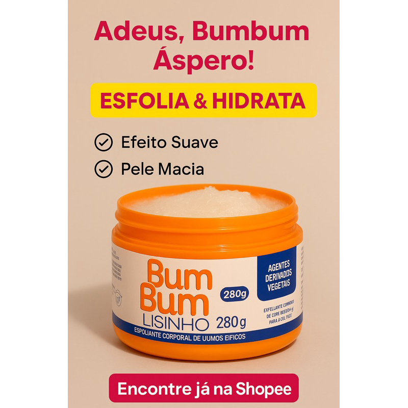 Bum Bum Lisinho 280g – Fim da Aspereza e Pele Grossa em 7 Dias! Esfoliante + Hidratação Profunda