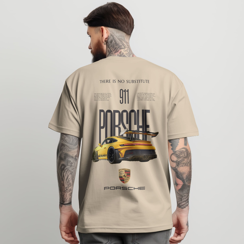Camiseta Oversized Masculina Streetwear Porsche 100% Algodão Camisa Blusa GT3 RS Amarelo Exclusiva