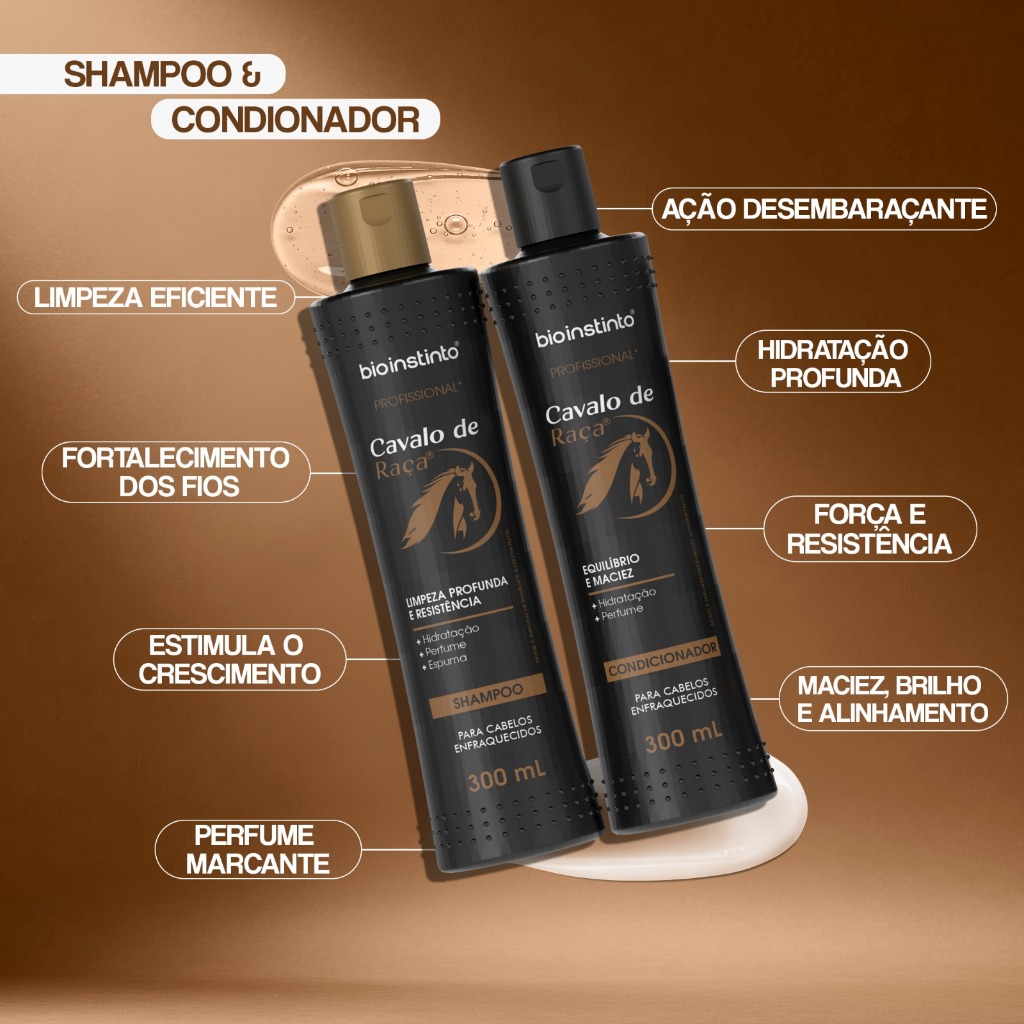 01 KIT CAVALO DE RAÇA 4 Itens Bio Instinto Força Anti queda e fortalecimento dos fios e crescimento
