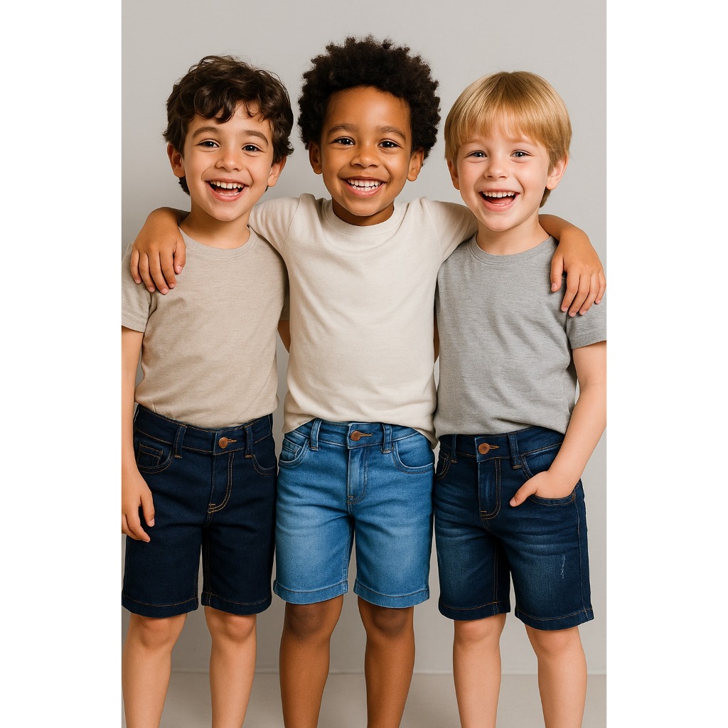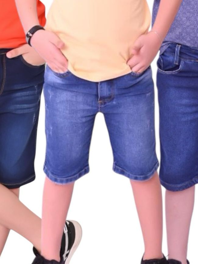Kit com 3 Bermudas Jeans para Menino Cintura com Elástico Tamanhos 2 a 16