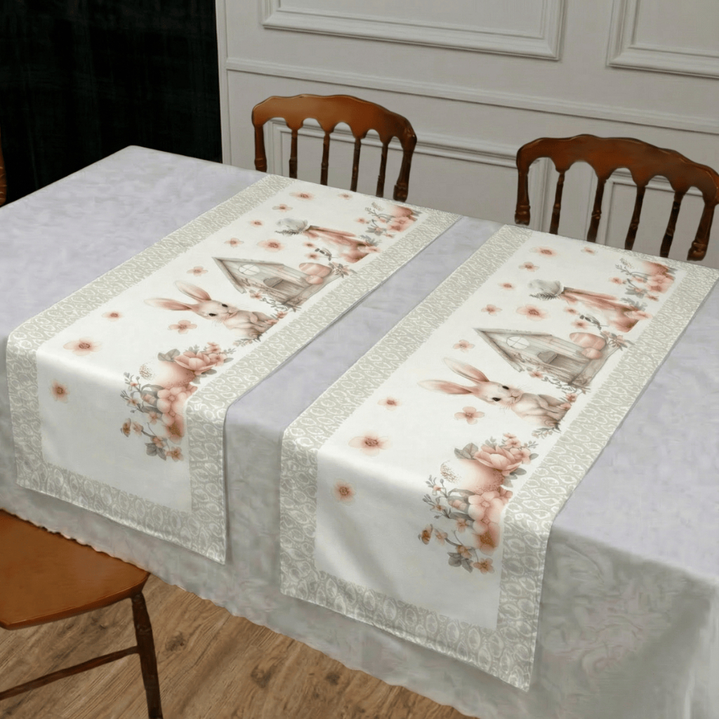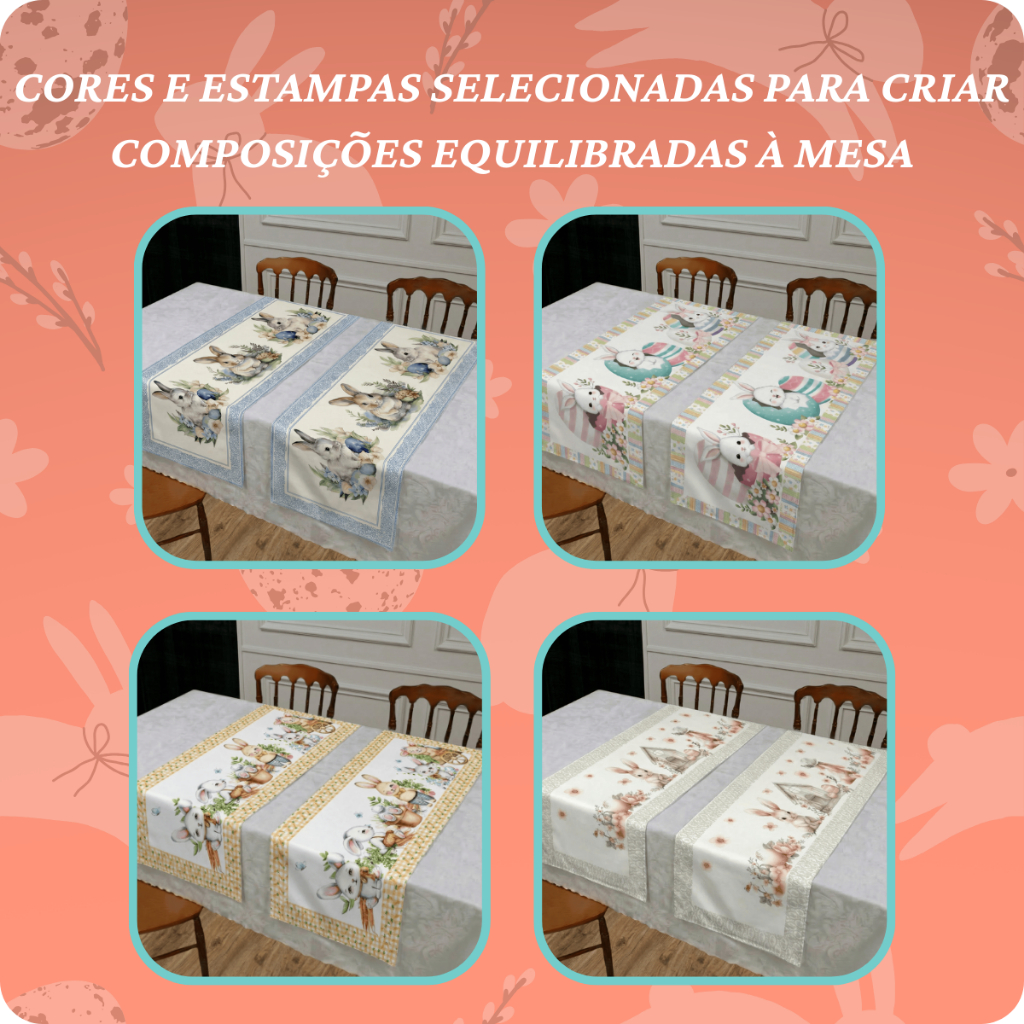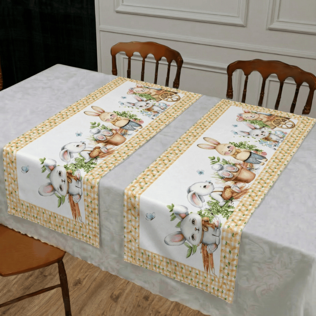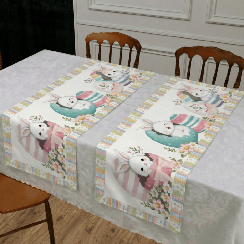 Kit 2 Trilho de Mesa Caminho Decorado Páscoa 1,30x50cm Mesa Posta Sala de Jantar Cozinha