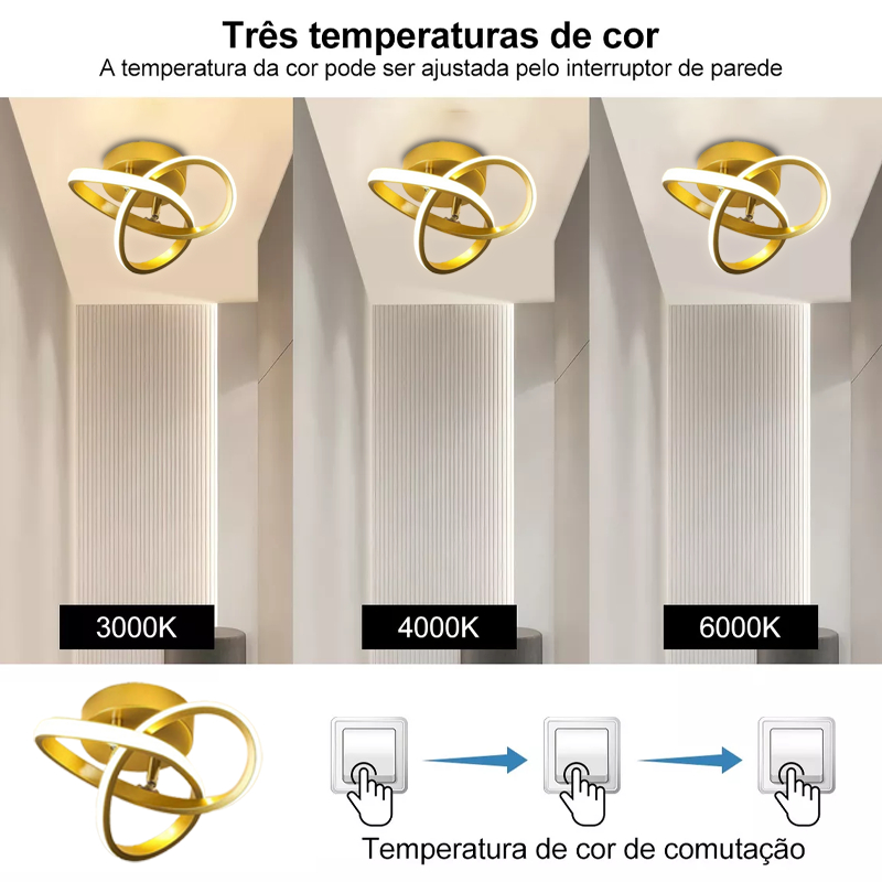 3 Cores Luminária De Teto Pendente Led Moderna Lustre para Corredor Sala Quarto Cozinha 110V-220V