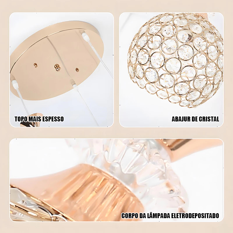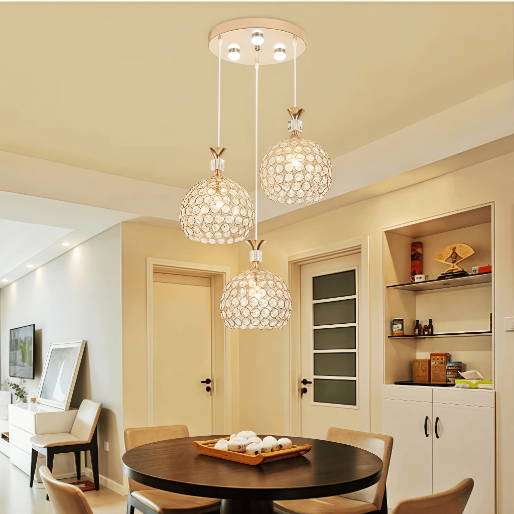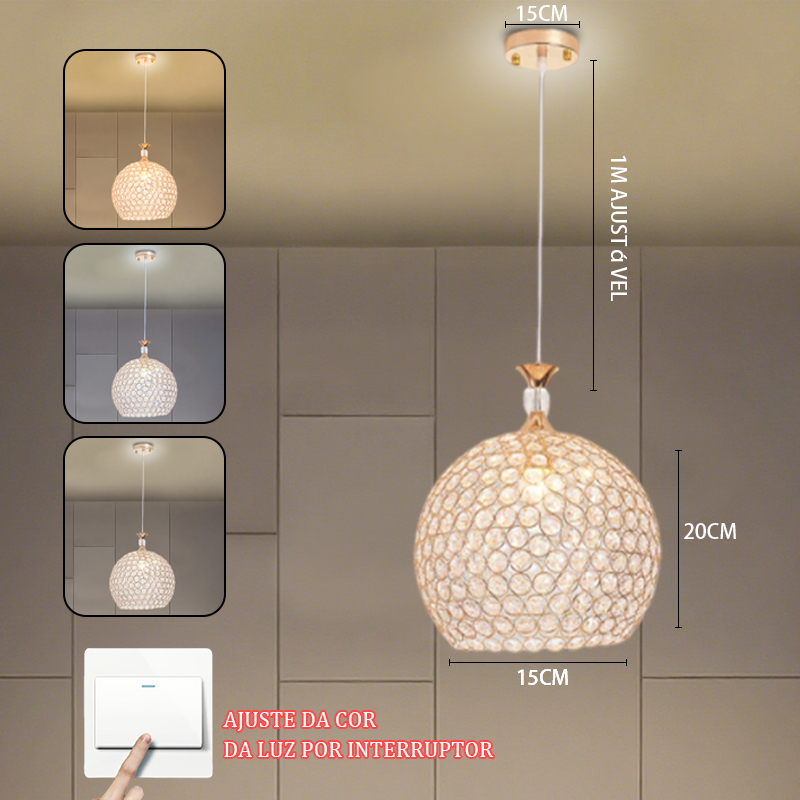 Lustre Pendente Cristal Globo Bolinha Luxuoso Sala de estar, Sala de jantar, Decoração Iluminação