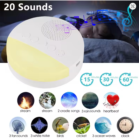 Máquina de ruído branco infantil , luz noturna com carregamento USB, reprodutor de som para dormir