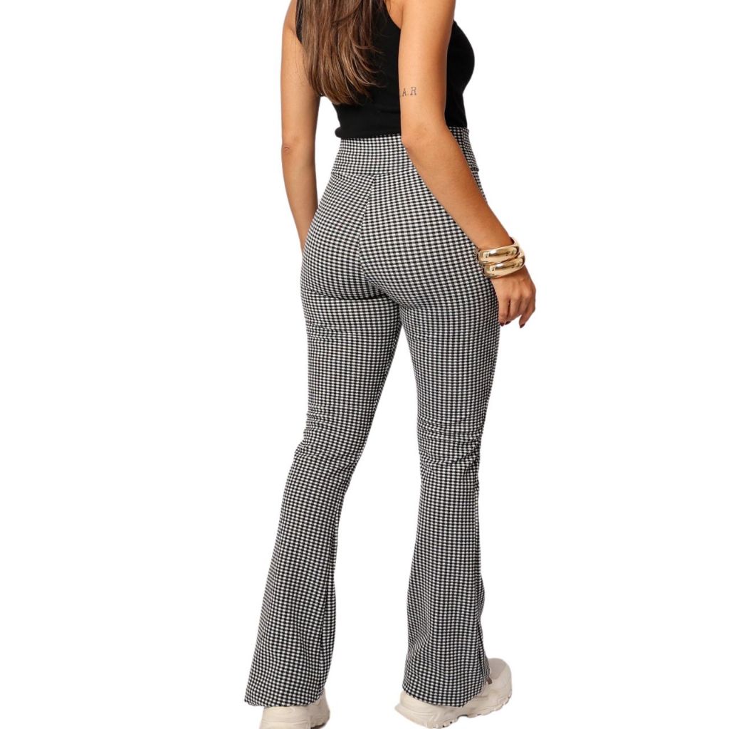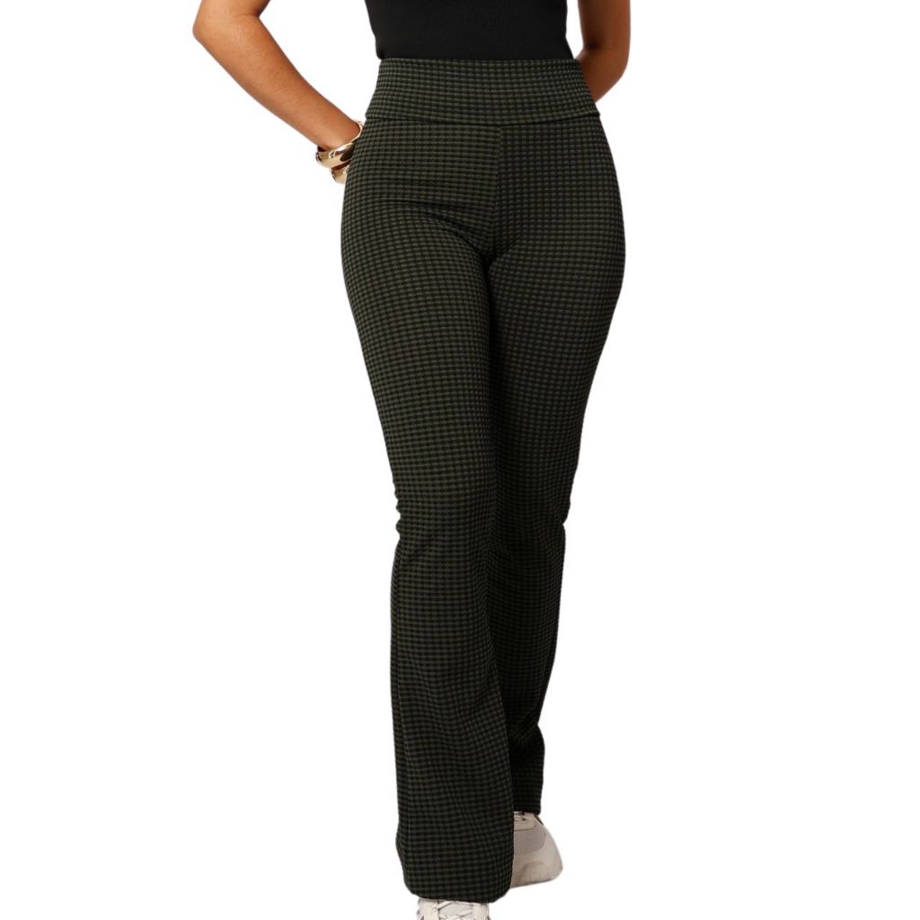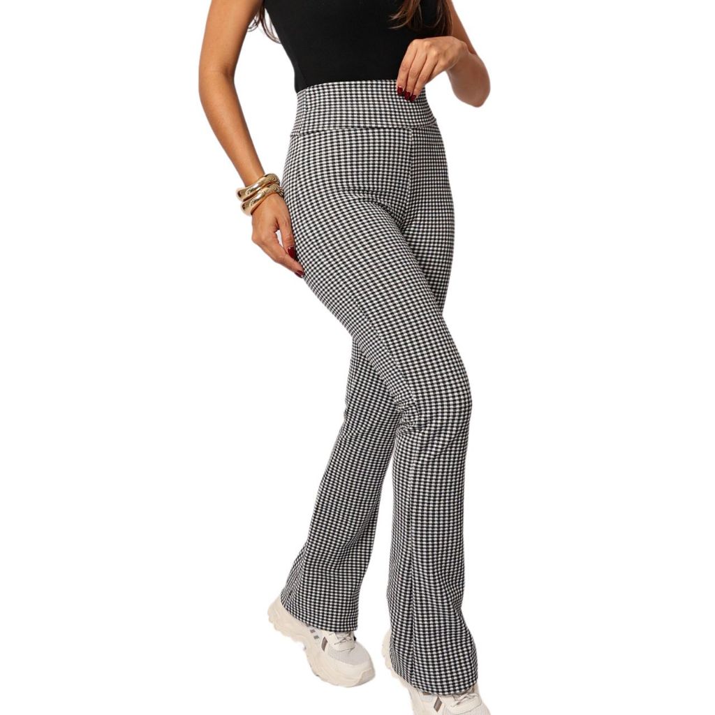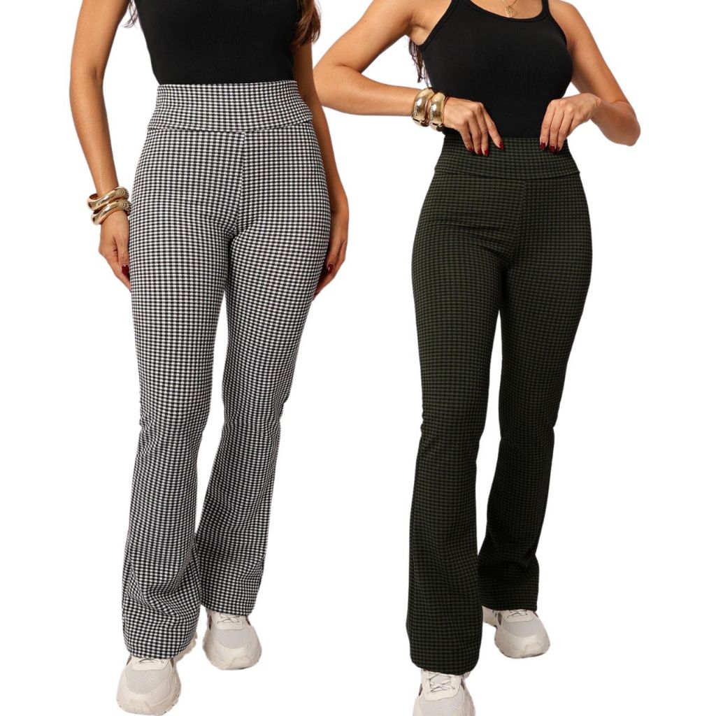 Calça Social Feminina Xadrez – Cintura Alta com Elastano