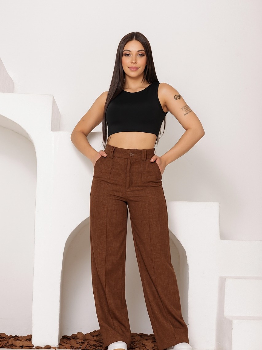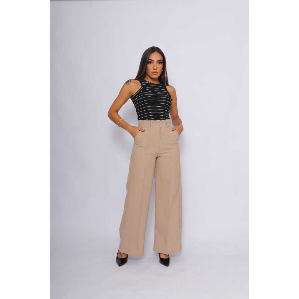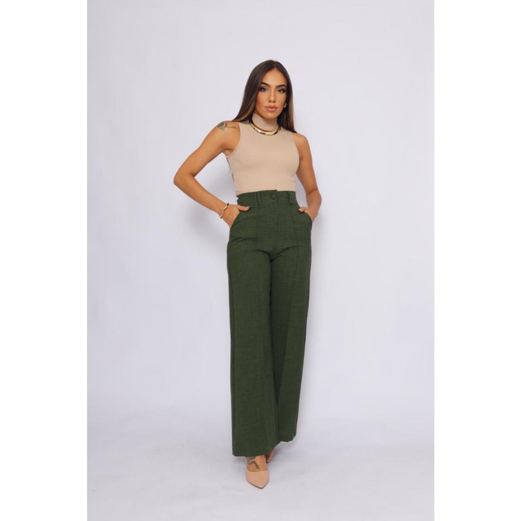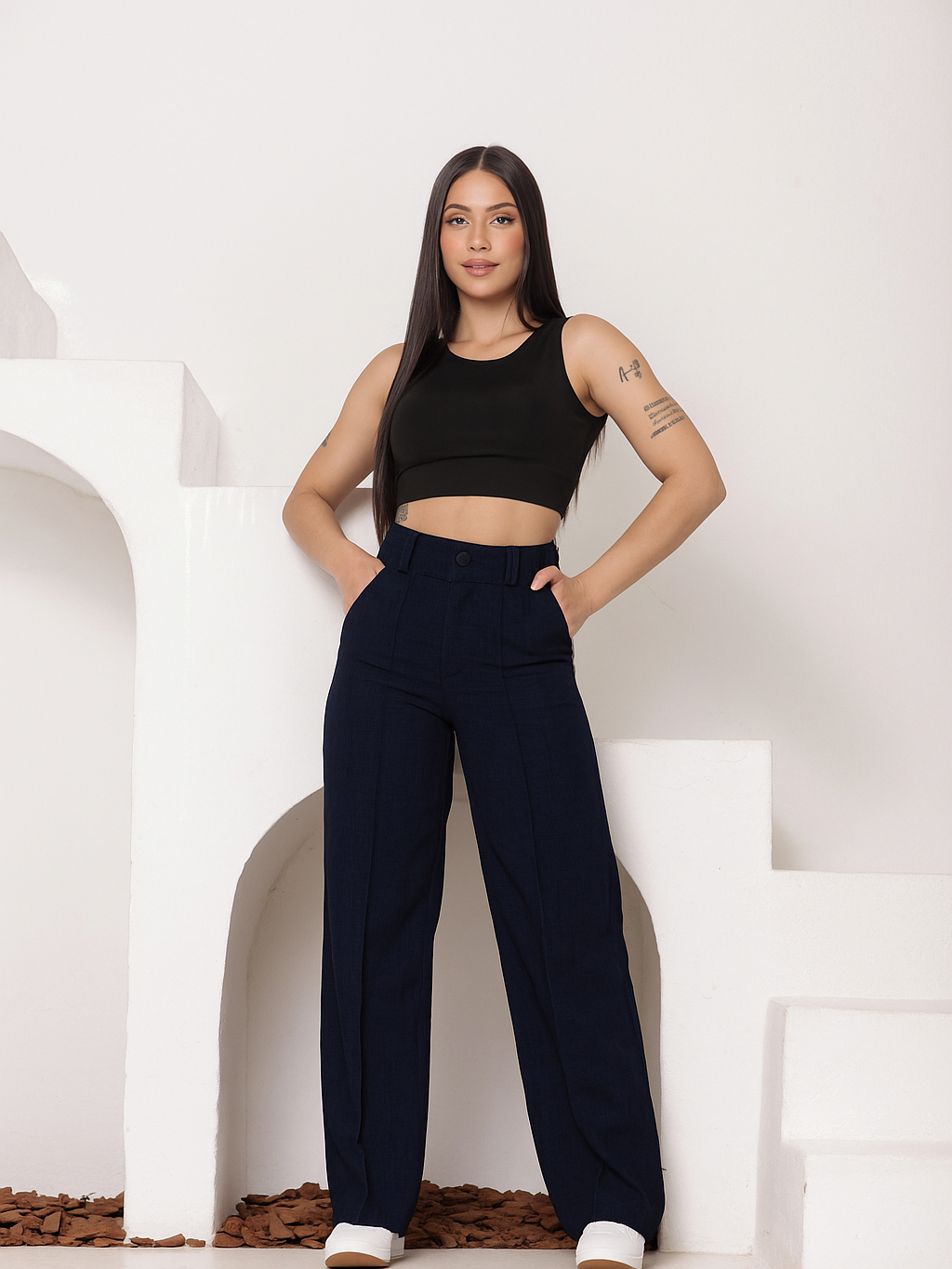 Calça Pantalona Feminina Linho Alfaiataria Cintura Alta - Tendencia 2026