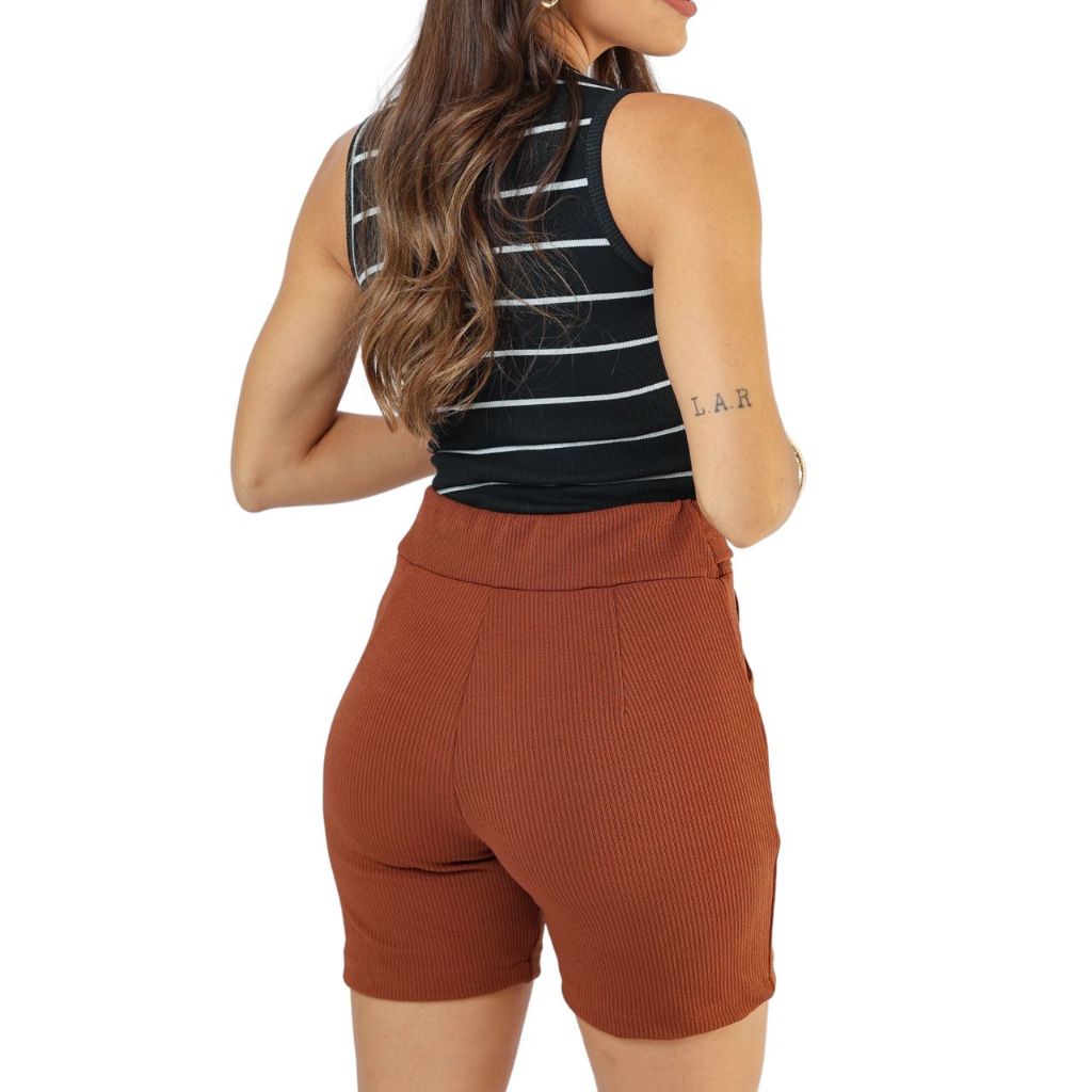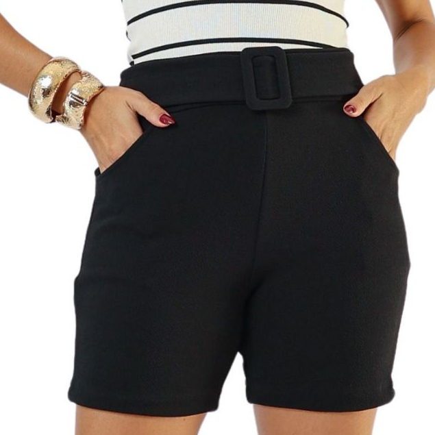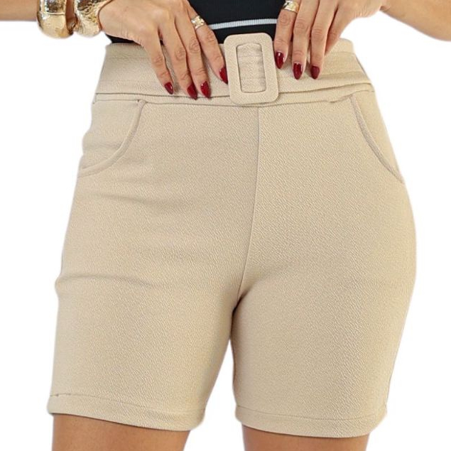 Short Feminino em Malha Crepe - Cintura Alta com Bolsos