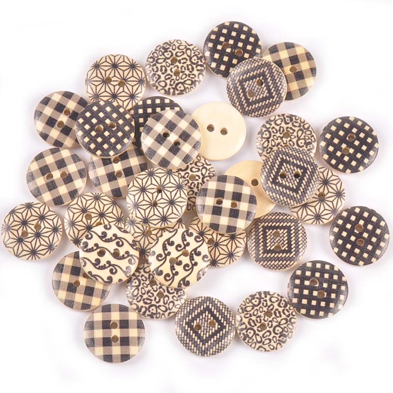 50Pcs 18mm Impressão Retro Mista Botões Decorativos De Madeira Para Roupas De Bricolagem Acessórios De Costura 2Holes MT2643