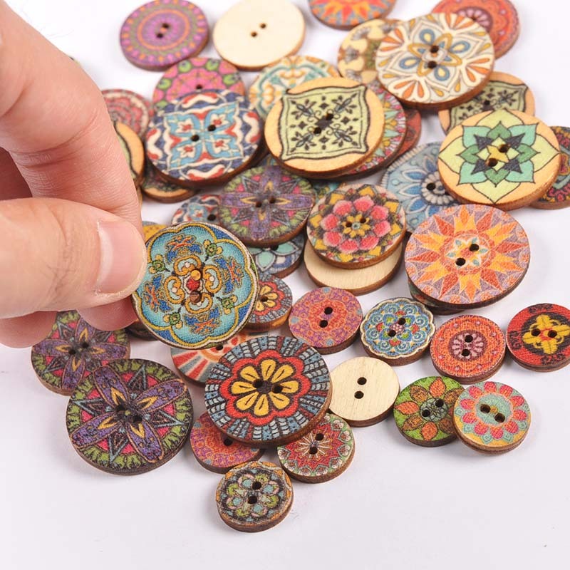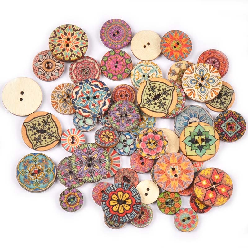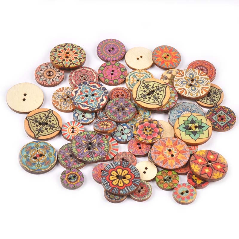 50pcs 15/20/25mm Botões De Madeira Com Padrão De Flores 2 Furos Misturados Para Ferramentas De Costura Artesanal De Bricolagem MT2658