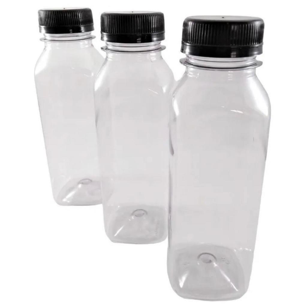 Garrafa pet quadrada transparente - 500ml /1 litro - água, sucos, caldo de cana, chocolate quente