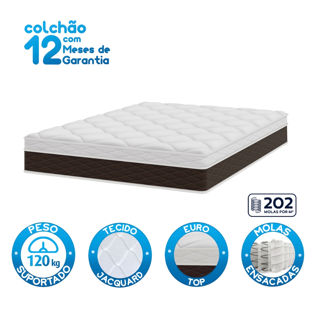 Colchão Casal Molas Ensacadas e Espuma D26 com Euro Pillow 138x188x24 Marrom Umaflex
