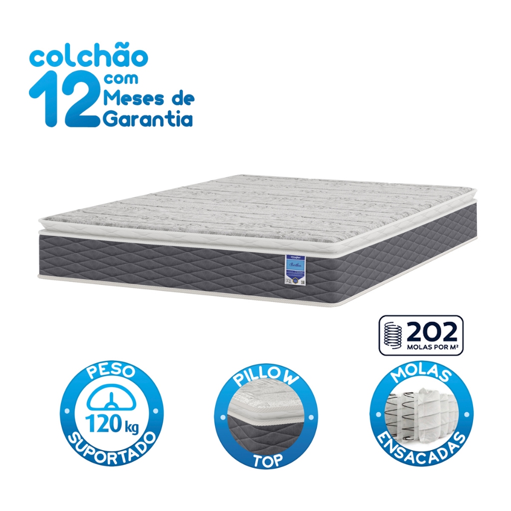 Colchão Casal Molas Ensacadas e Espuma D26 com Pillow Top 138x188x25 Cinza Umaflex