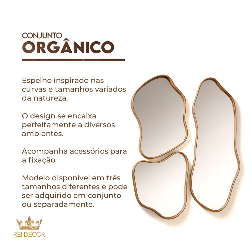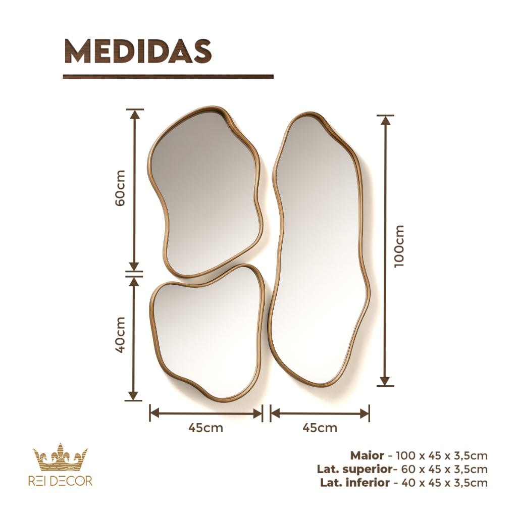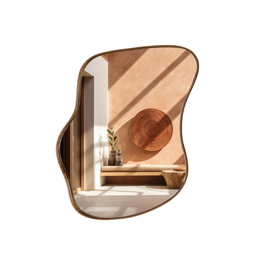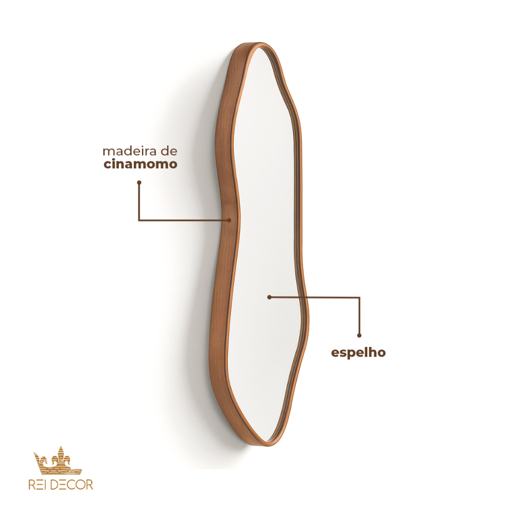 Espelhos Slim Cinamomo Orgânicos Assimétricos Moldura Amadeirada Sala Quarto Clínica Escritório
