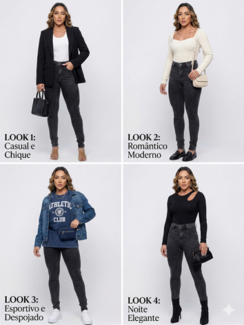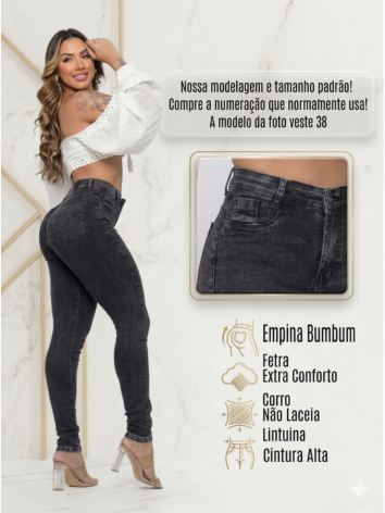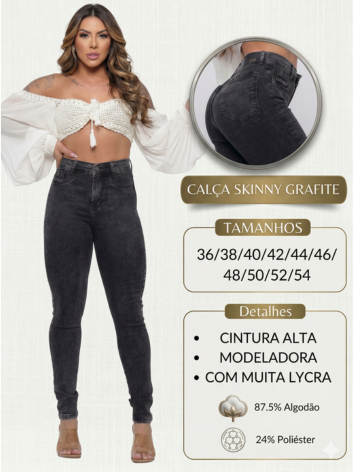 Calça Jeans Feminina Grafite Skinny Marmorizada Cintura Alta Preta