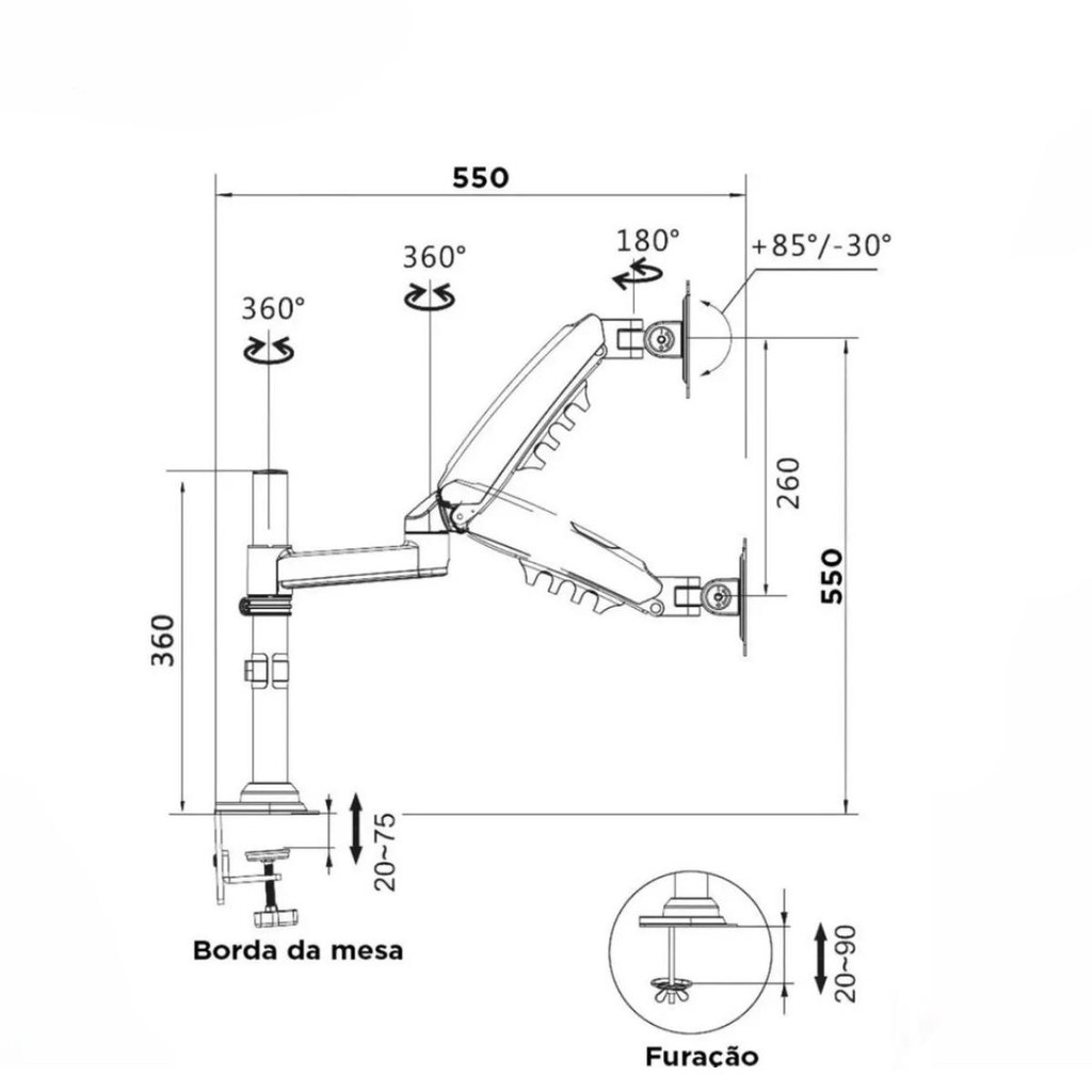 Suporte Monitor H100 North Bayou com Braço Articulado 17-30 polegadas
