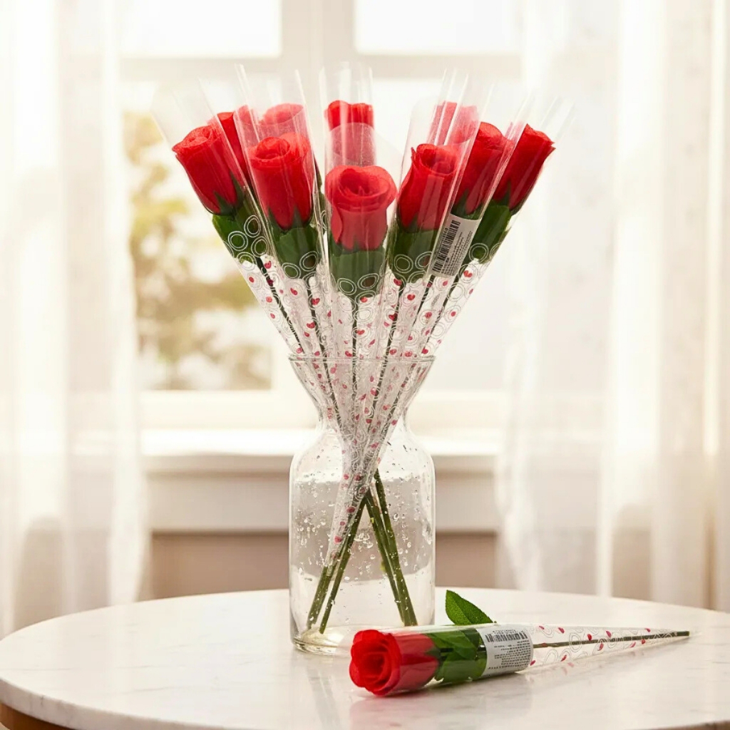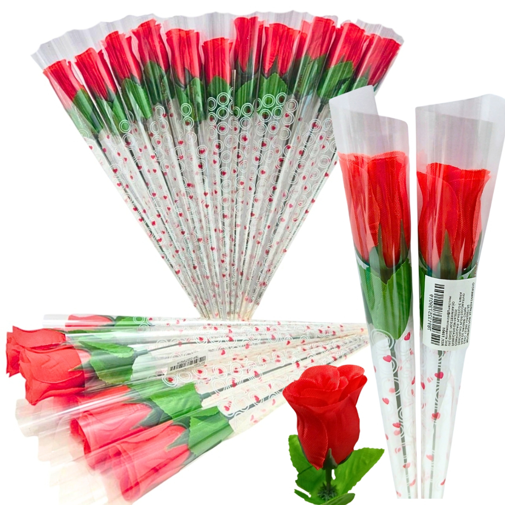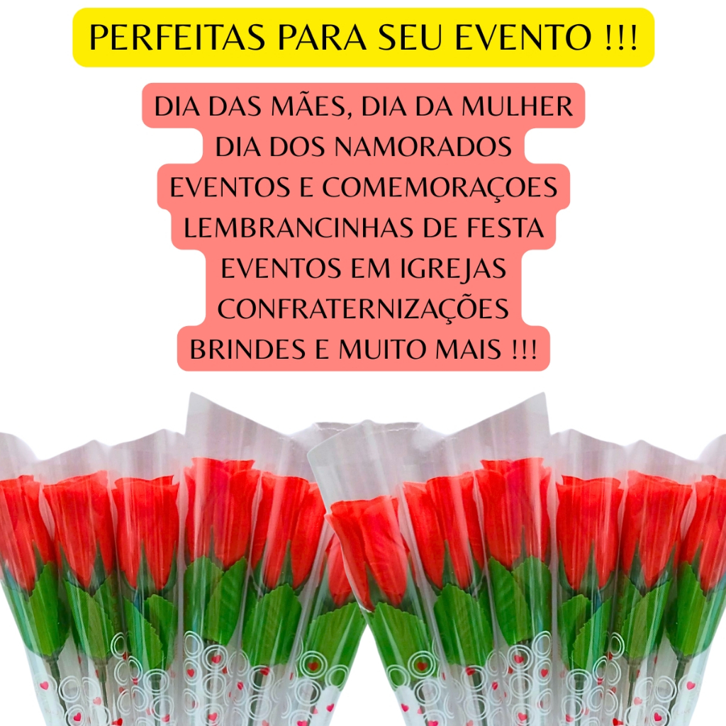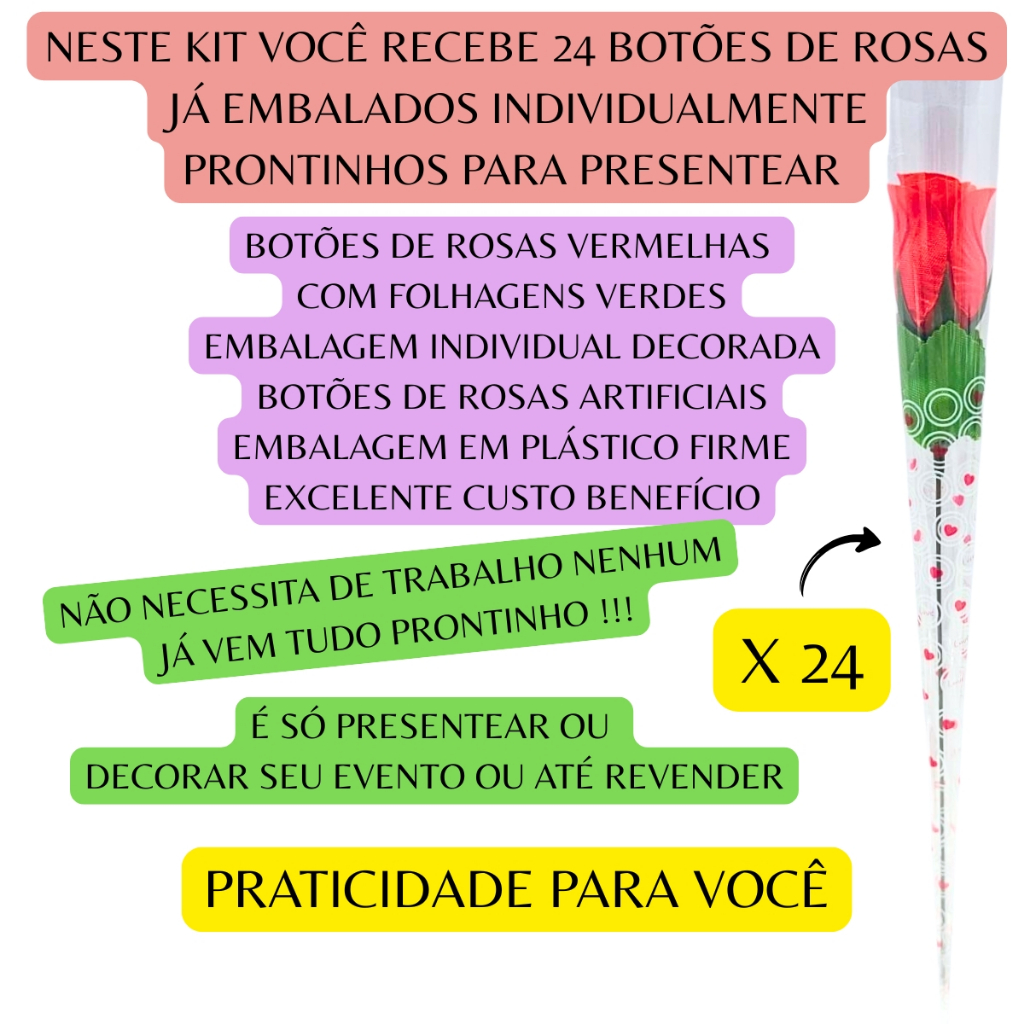 24 Rosas Vermelhas, botão de Rosas Flor Artificial Já Prontos Embalados Festas Dia das Mães Atacado