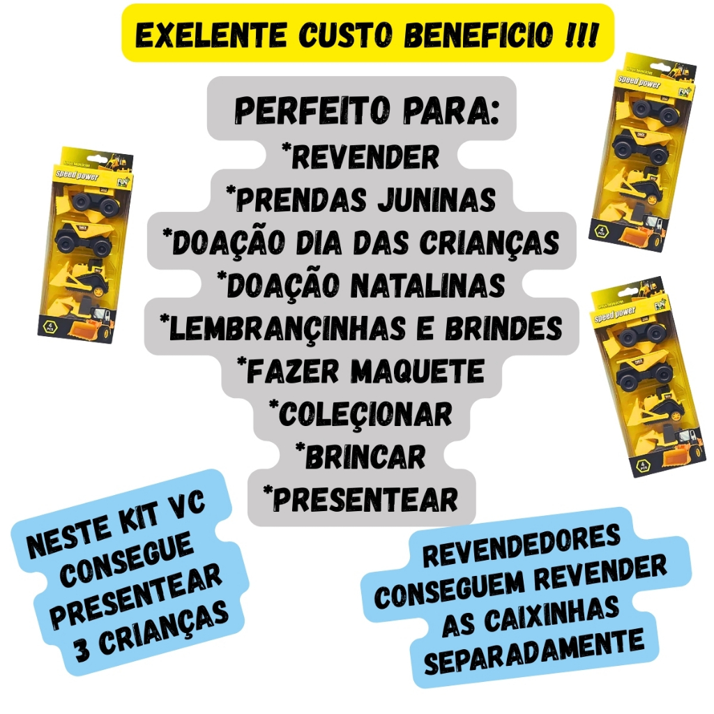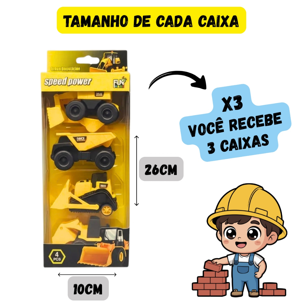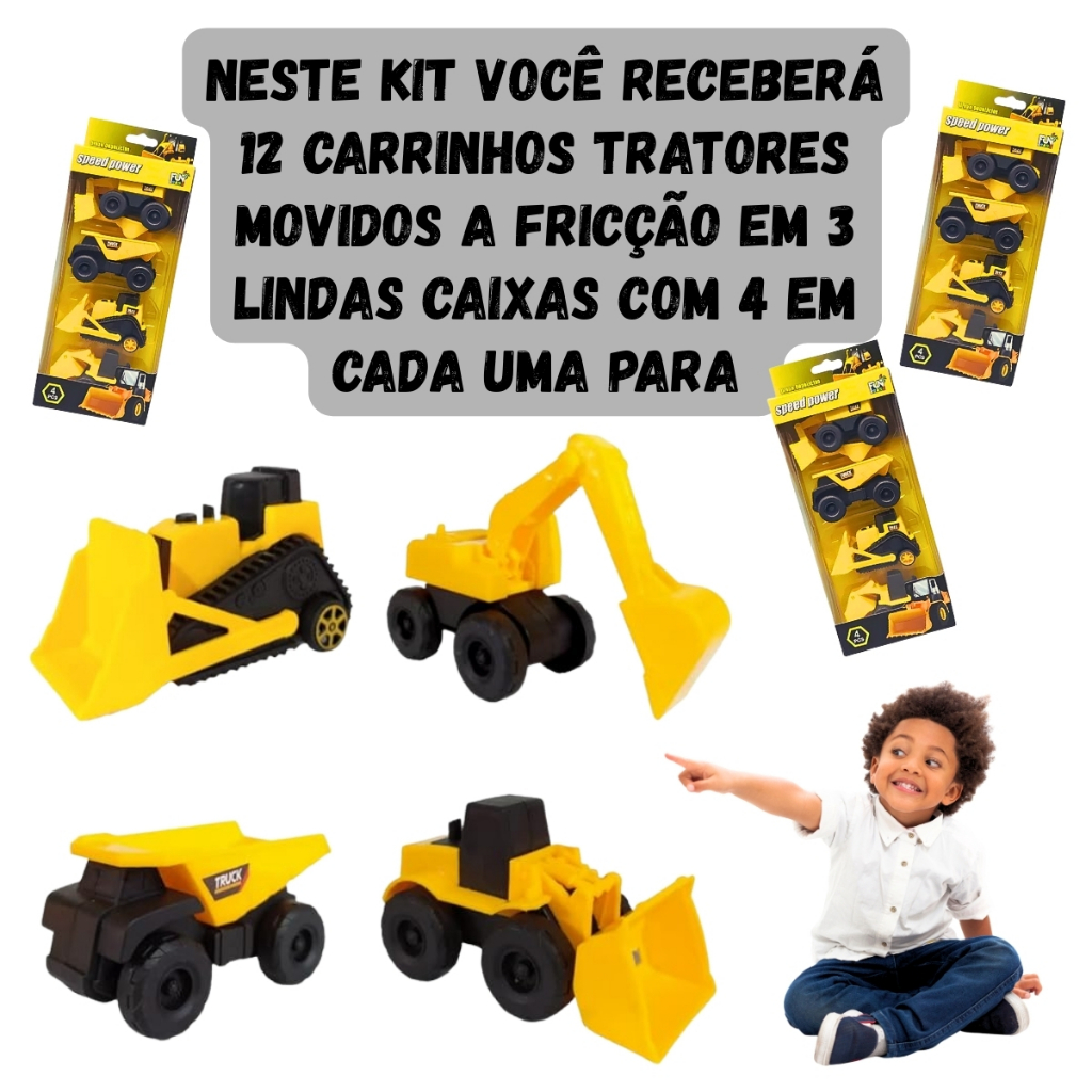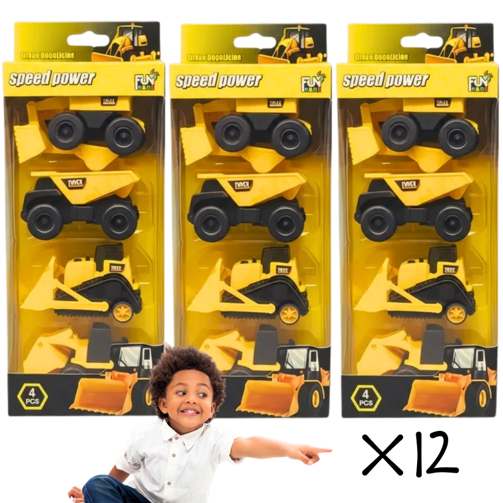 Kit 12 Carrinhos de Construção Brinquedo Trator Escavadeira Com Fricção Carrinhos Coleção Atacado