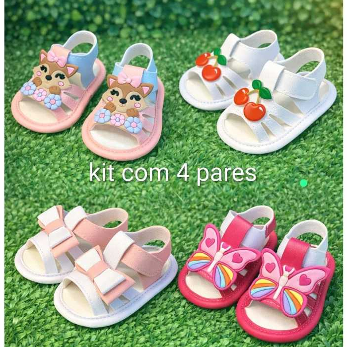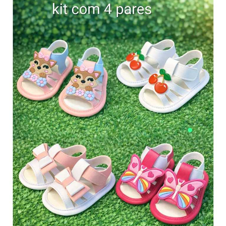 Kit Especial com 4 pares de Sandalias para Bebe menina Confortavel