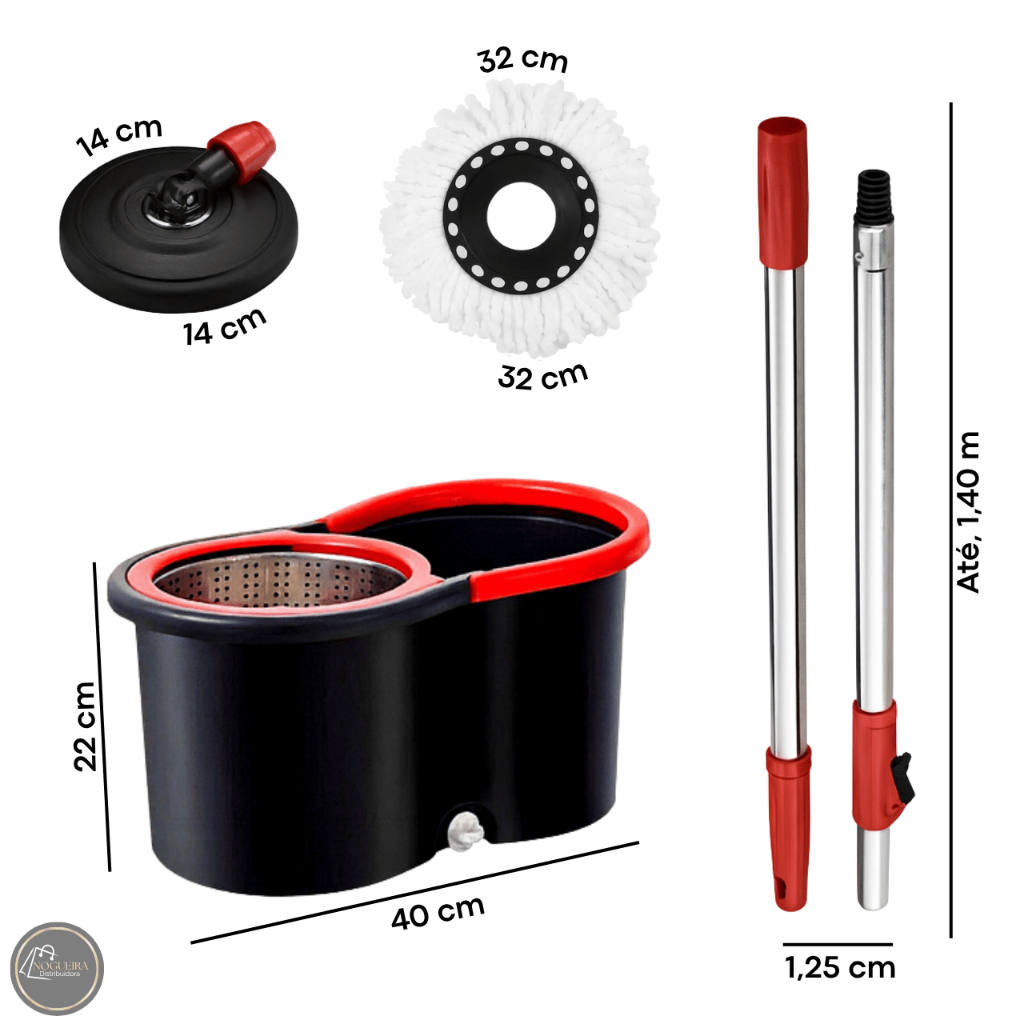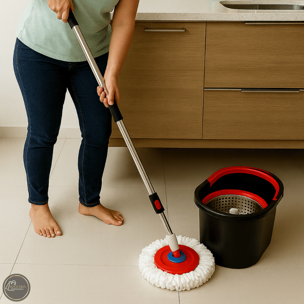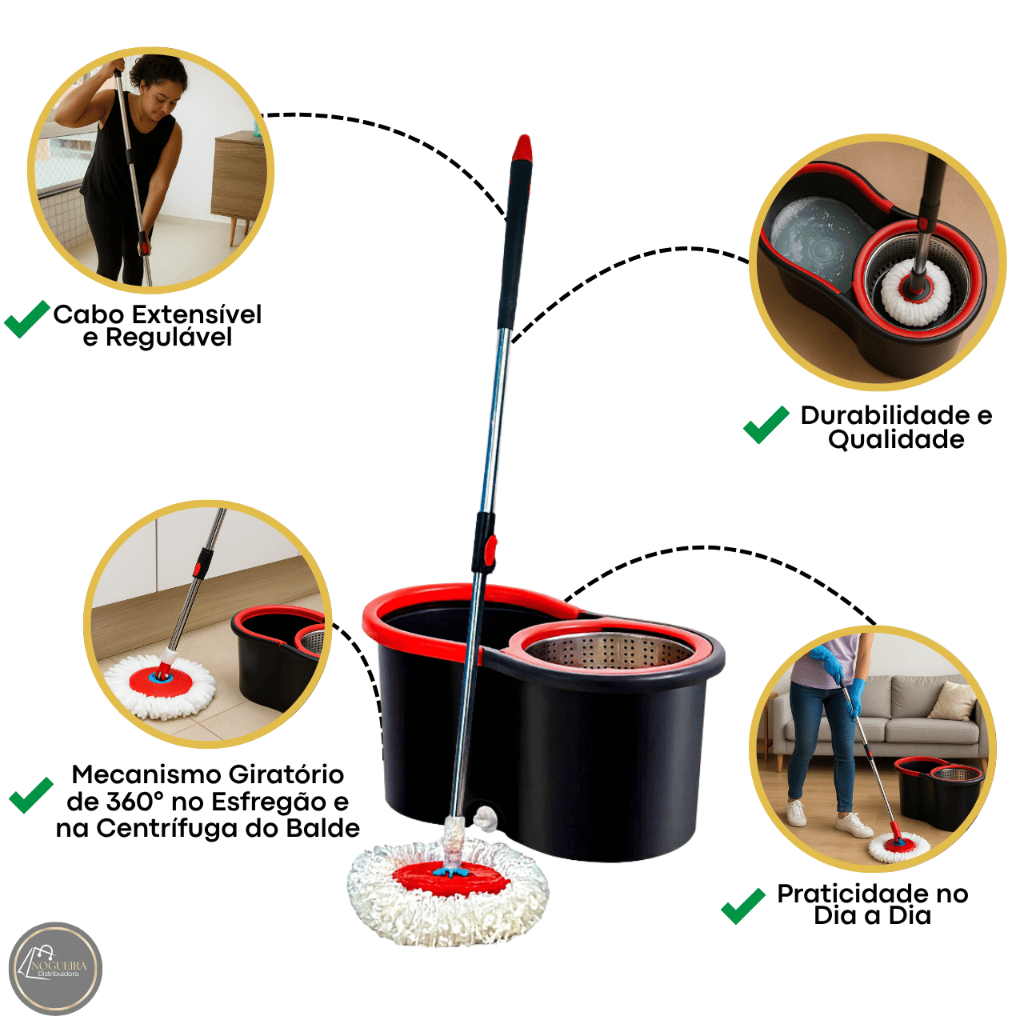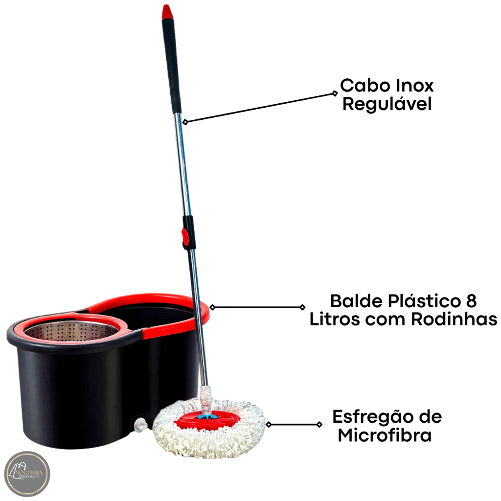 Mop Esfregão Giratório com Balde Centrifuga Cabo Regulável 8 Litros