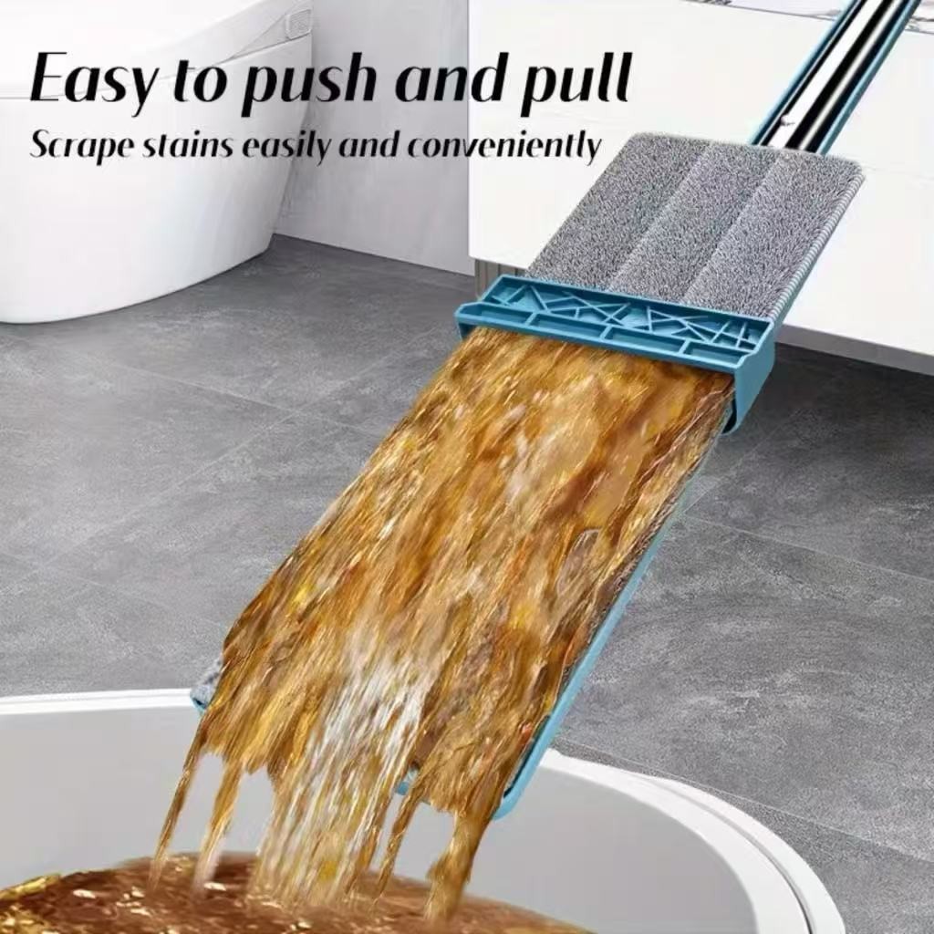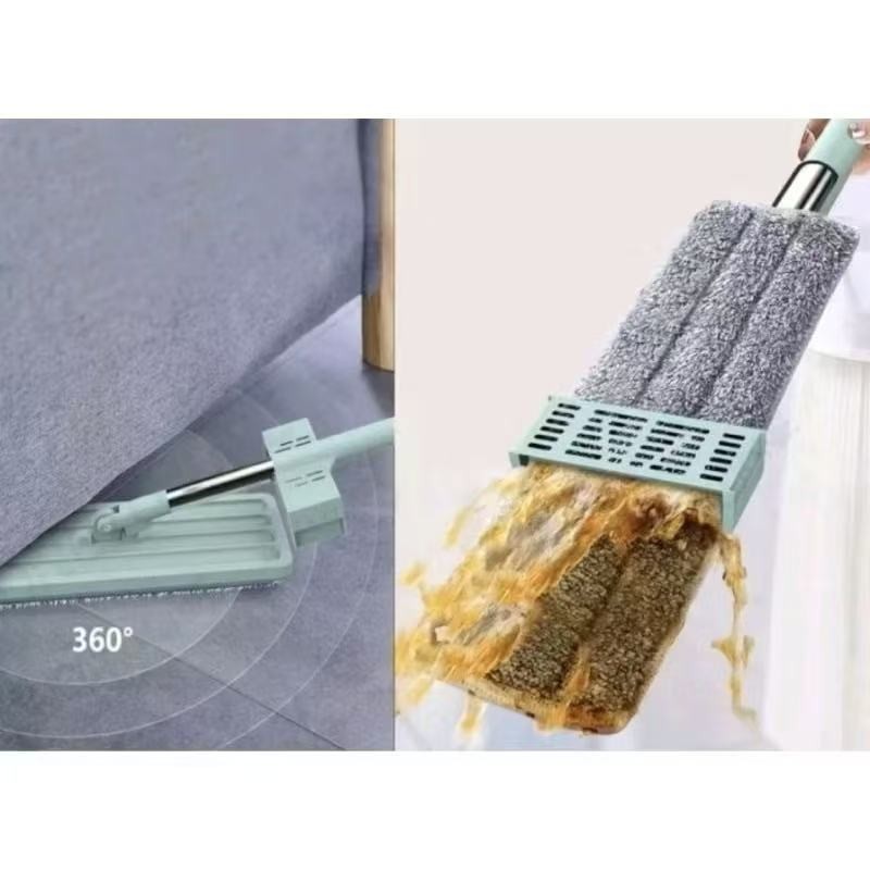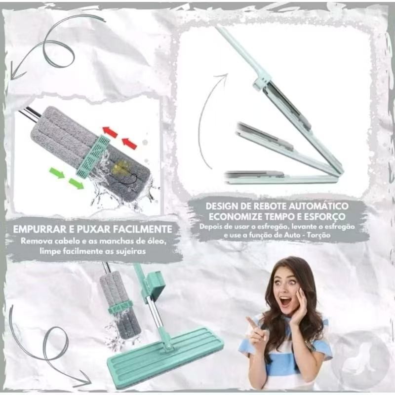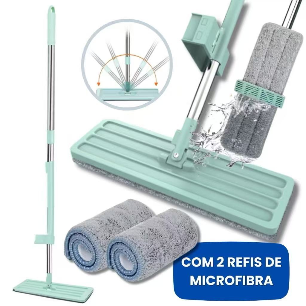 Mop Flat 360° com 2 Refis de Microfibra Auto Enxágue, Cabo Giratório, Limpador de Piso Doméstico
