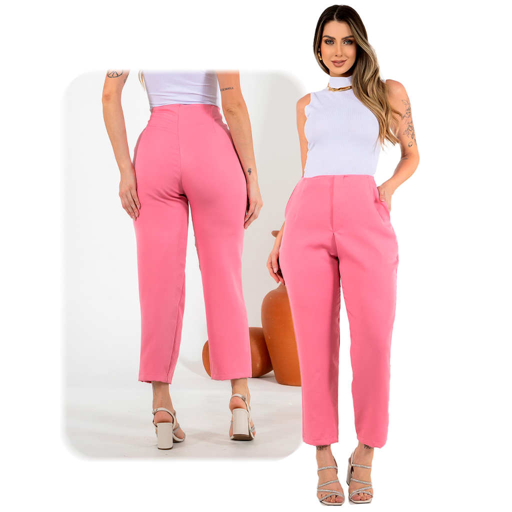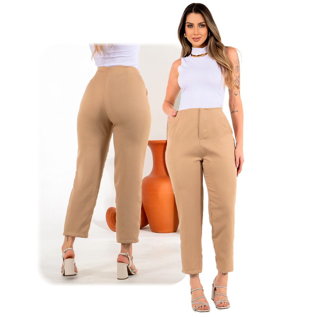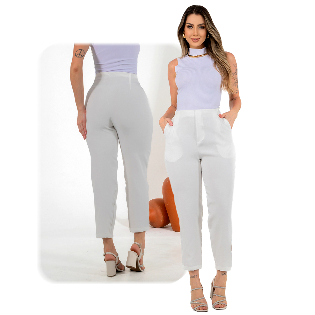 Calça Alfaiataria Zara Feminina Cintura Alta Zíper Lateral Social Luxo