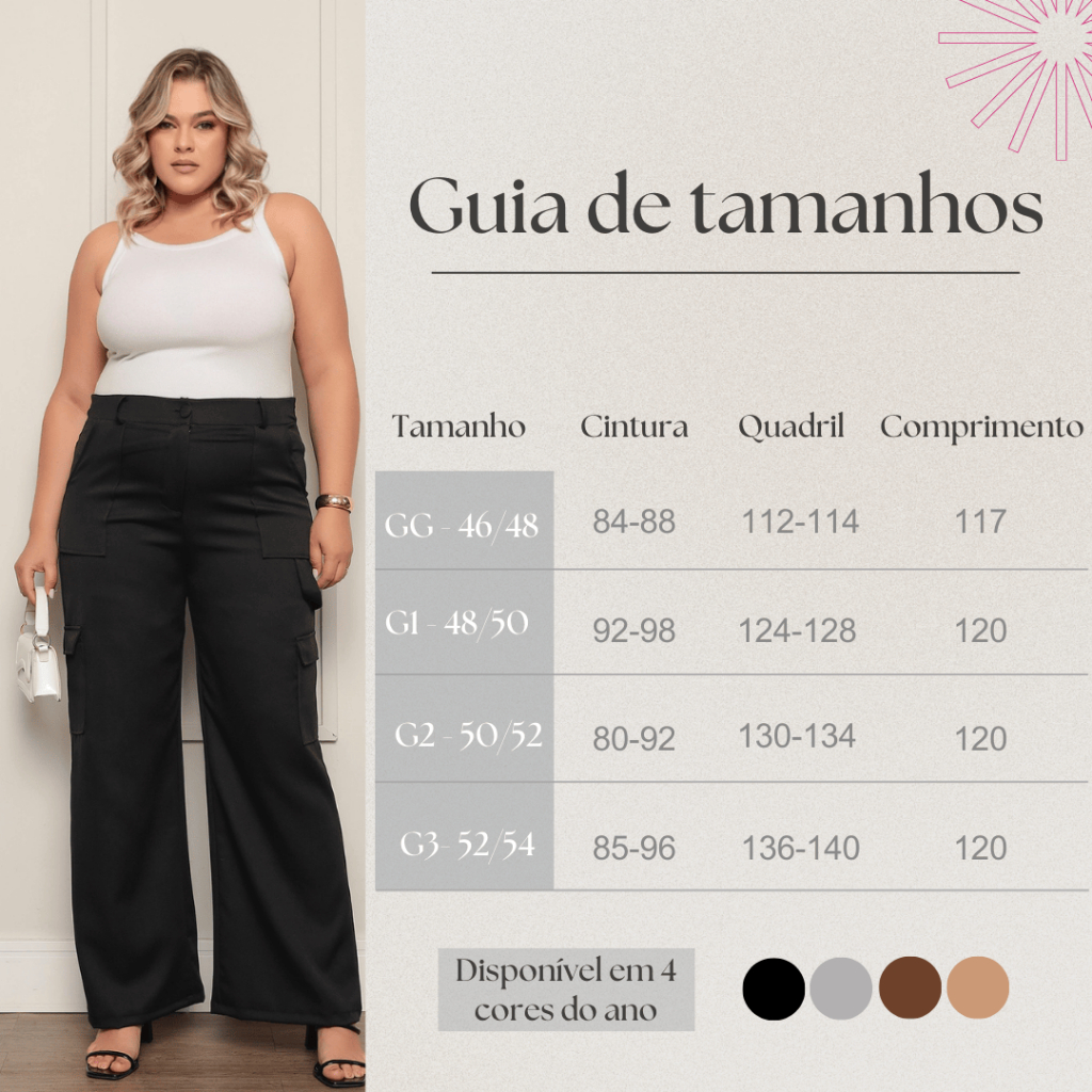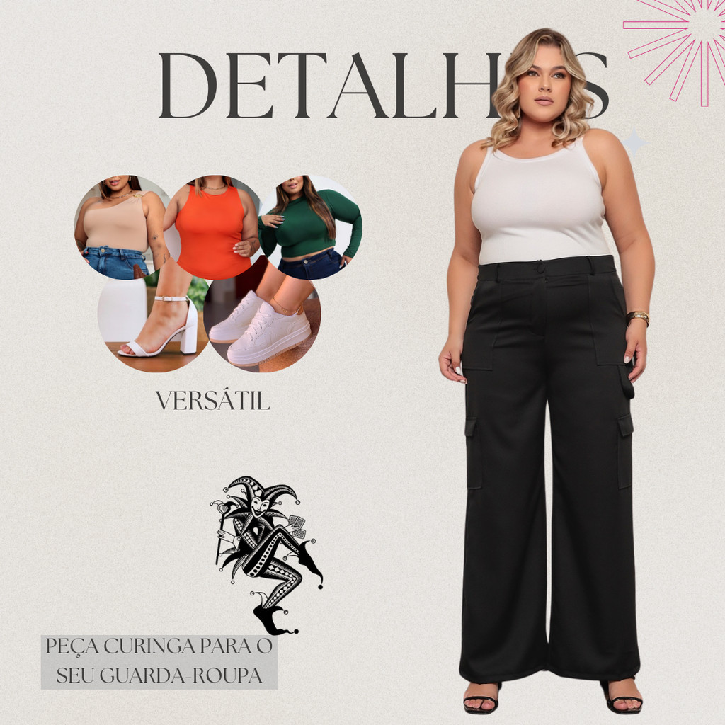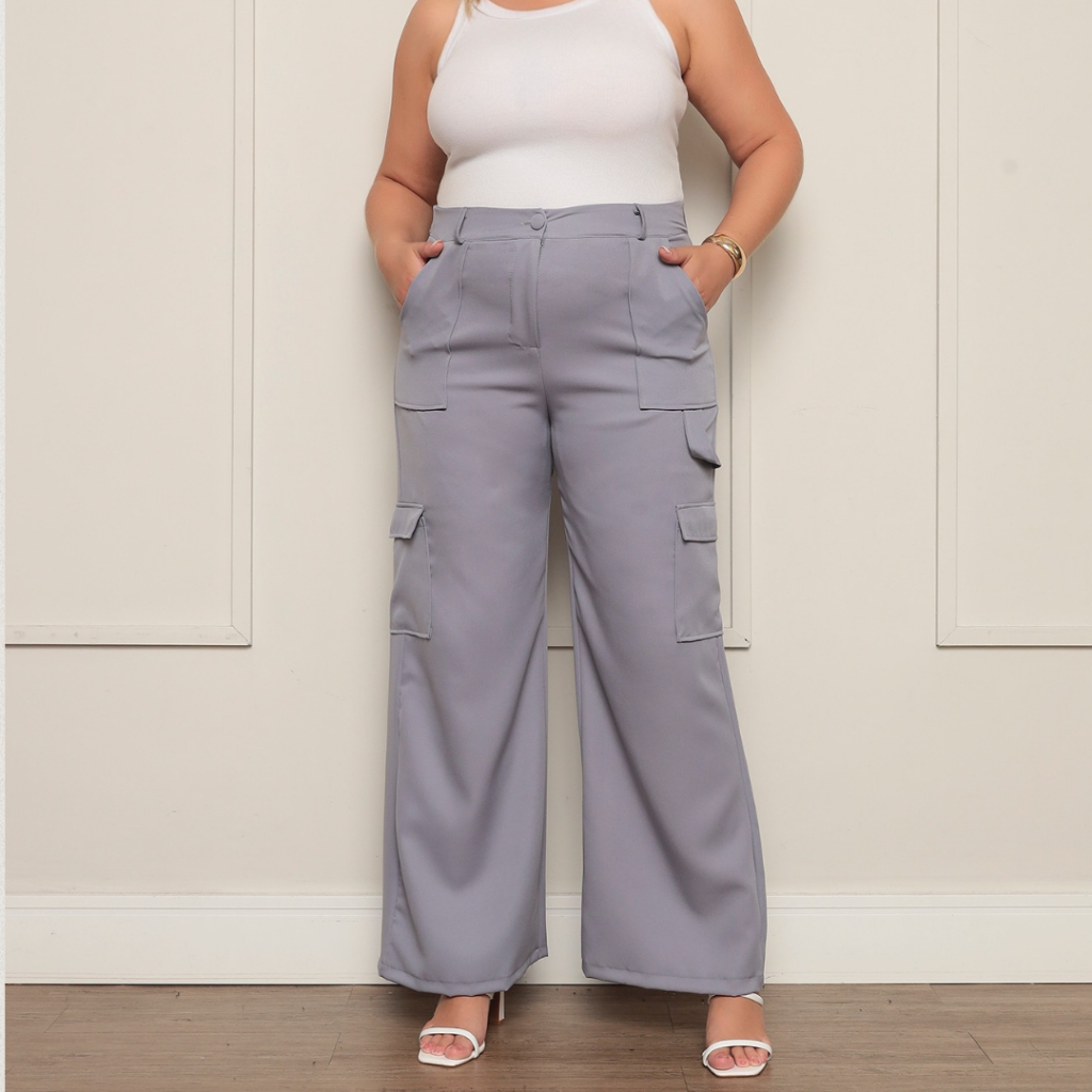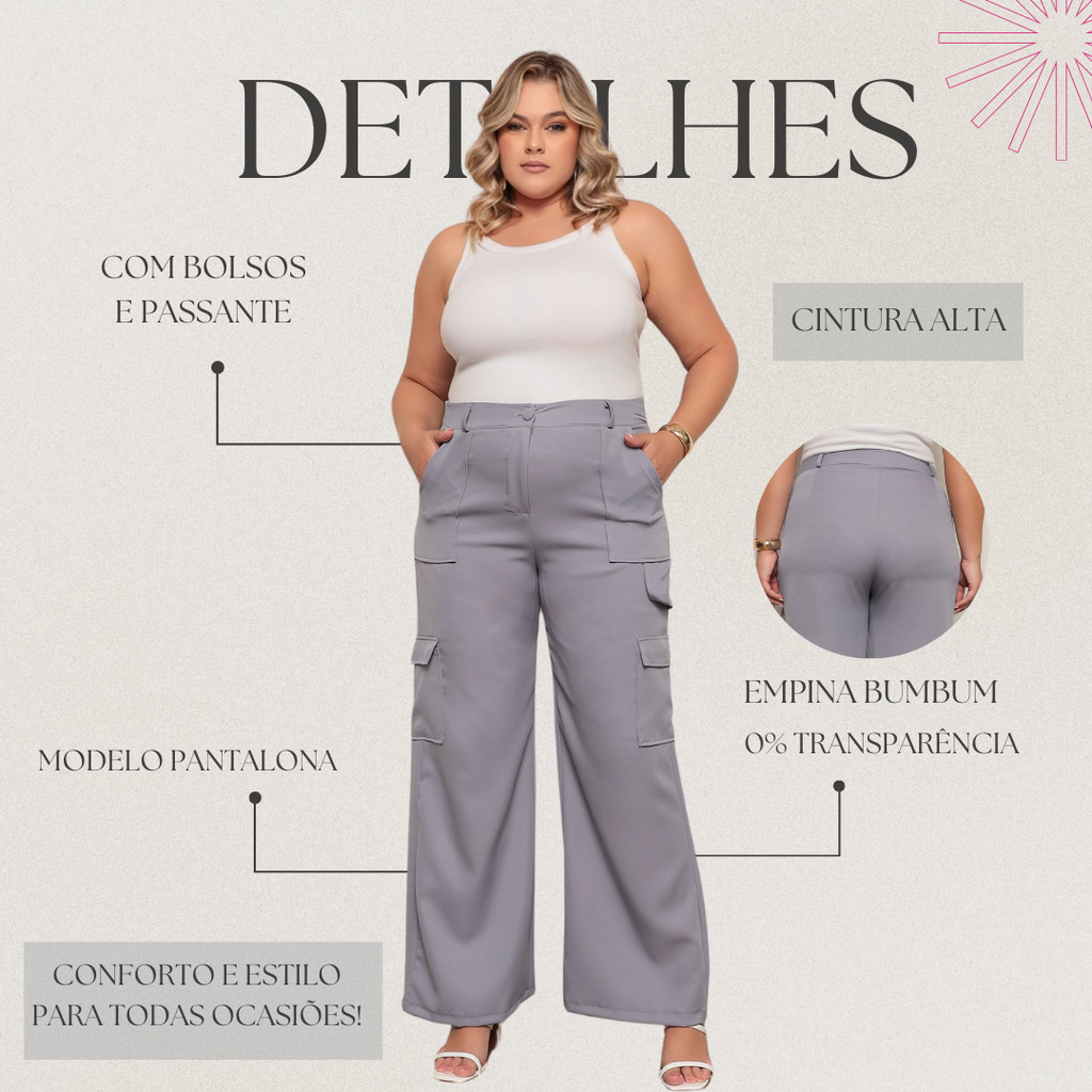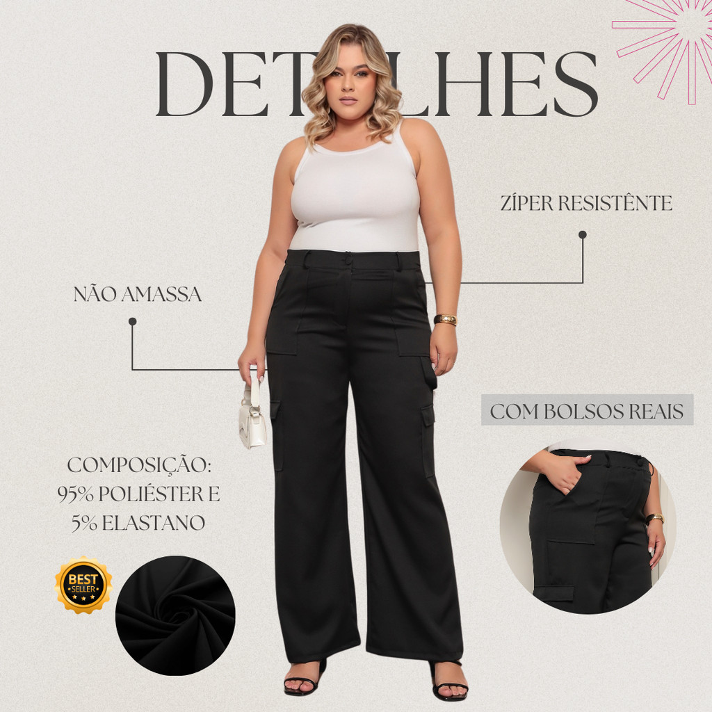 Calça Social Feminina PLUS SIZE Modelo Pantalona Alfaiataria Cargo Wide Leg Calsa Luxo Blogueira Moda
