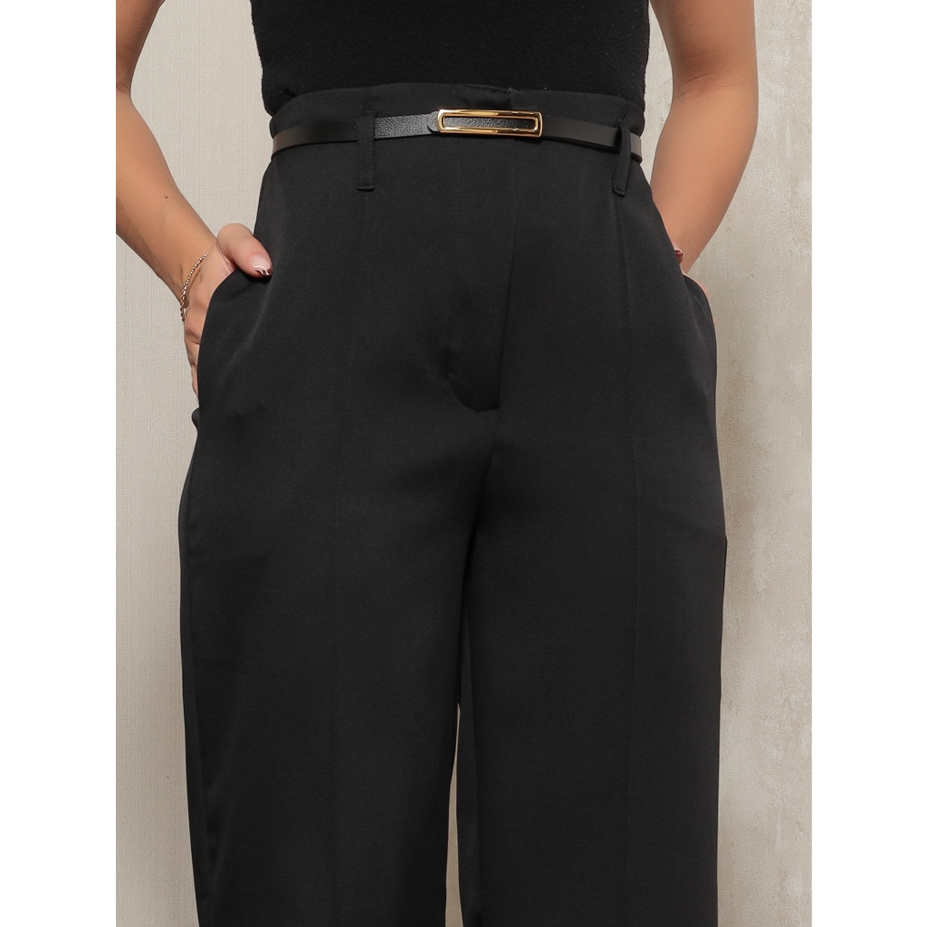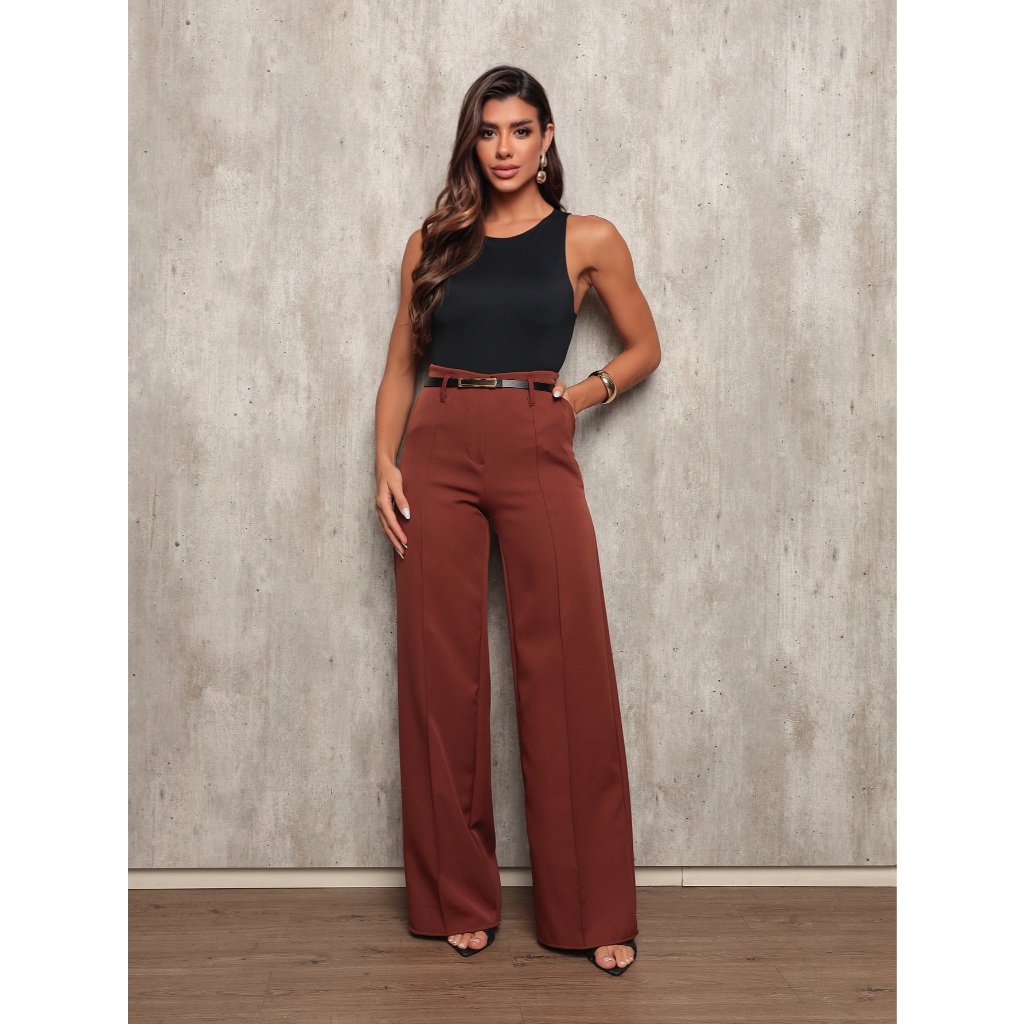 Calça Pantalona Feminina Social em Alfaiataria Estilo Com Cinto Elegante Premium