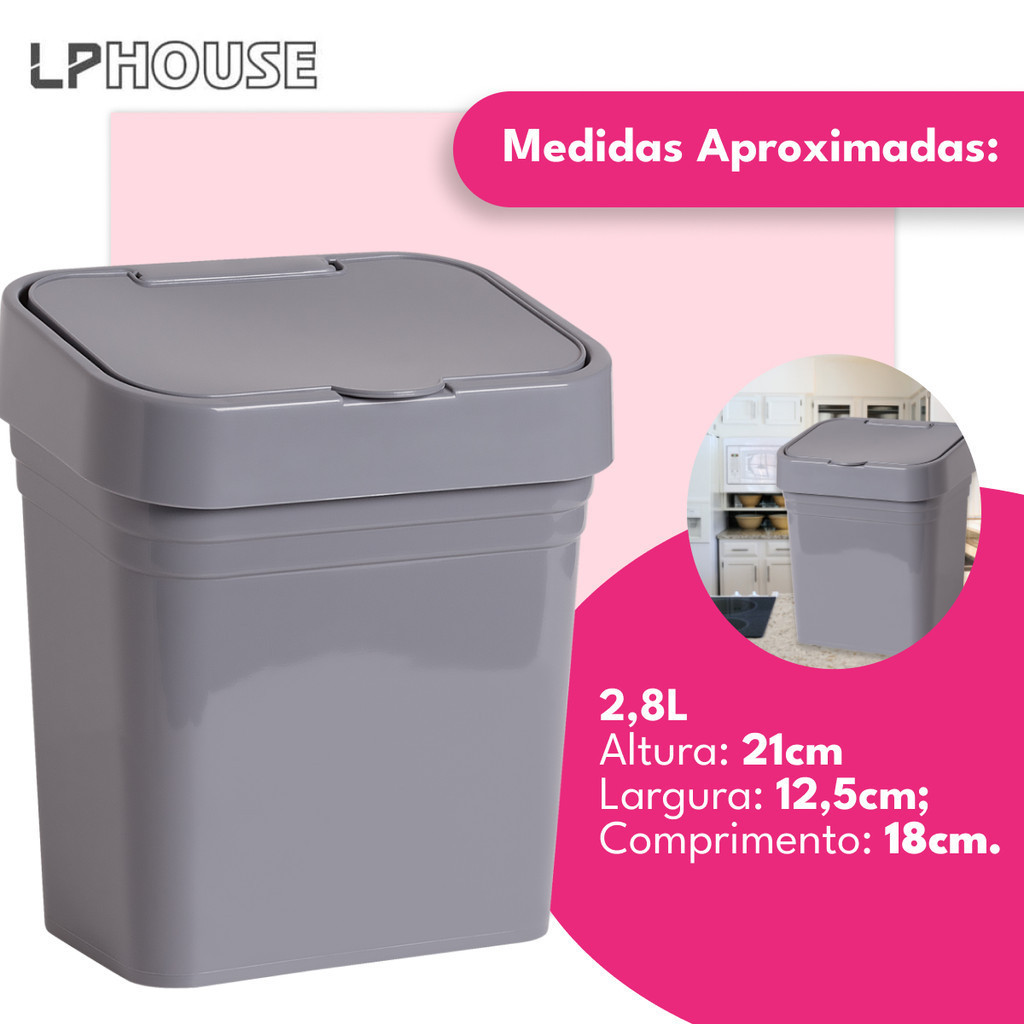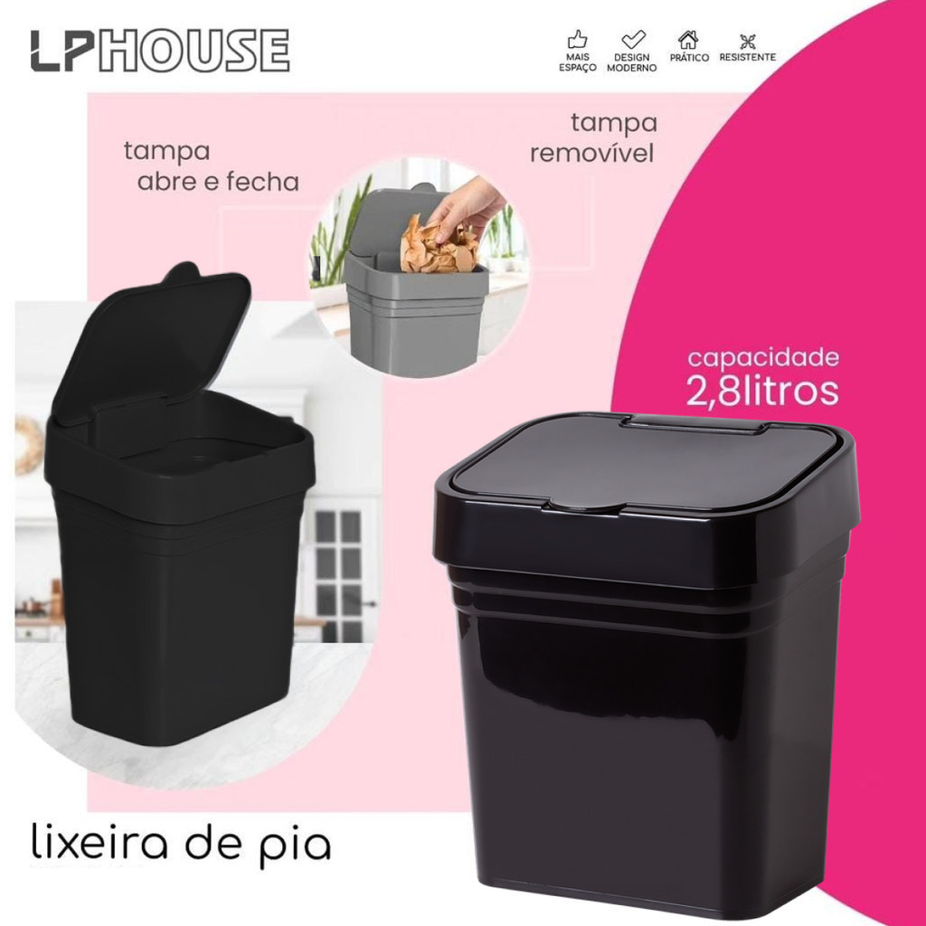 Lixeira de Pia 2,8L Basic com Tampa – Organização e Higiene para Cozinha